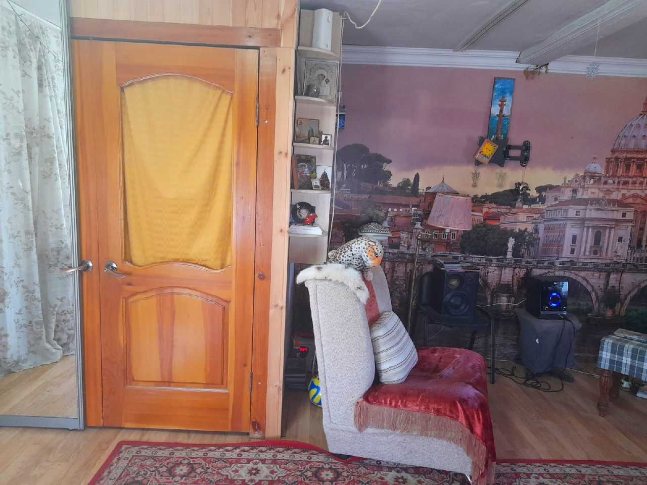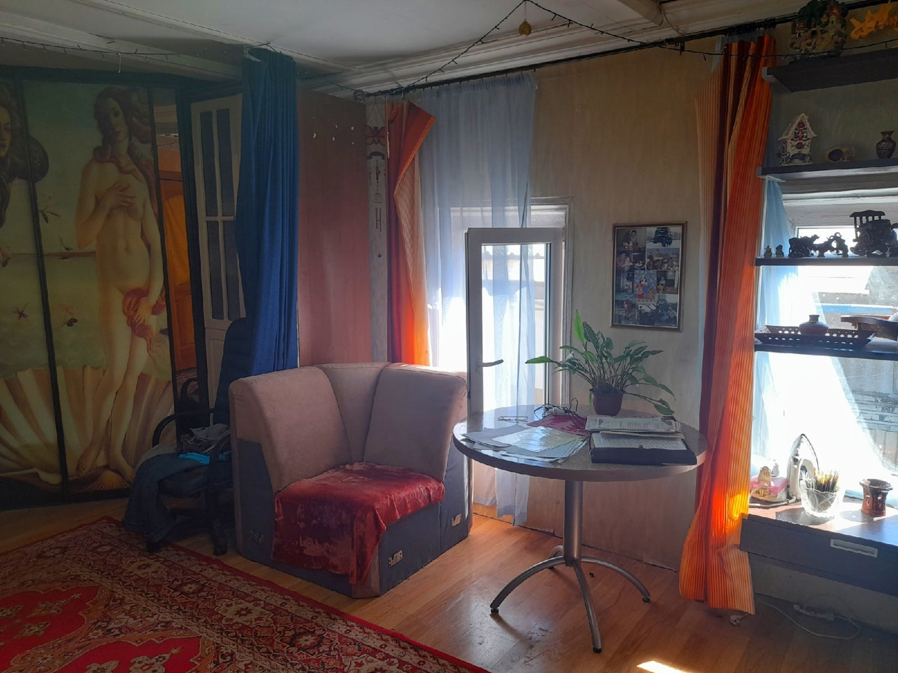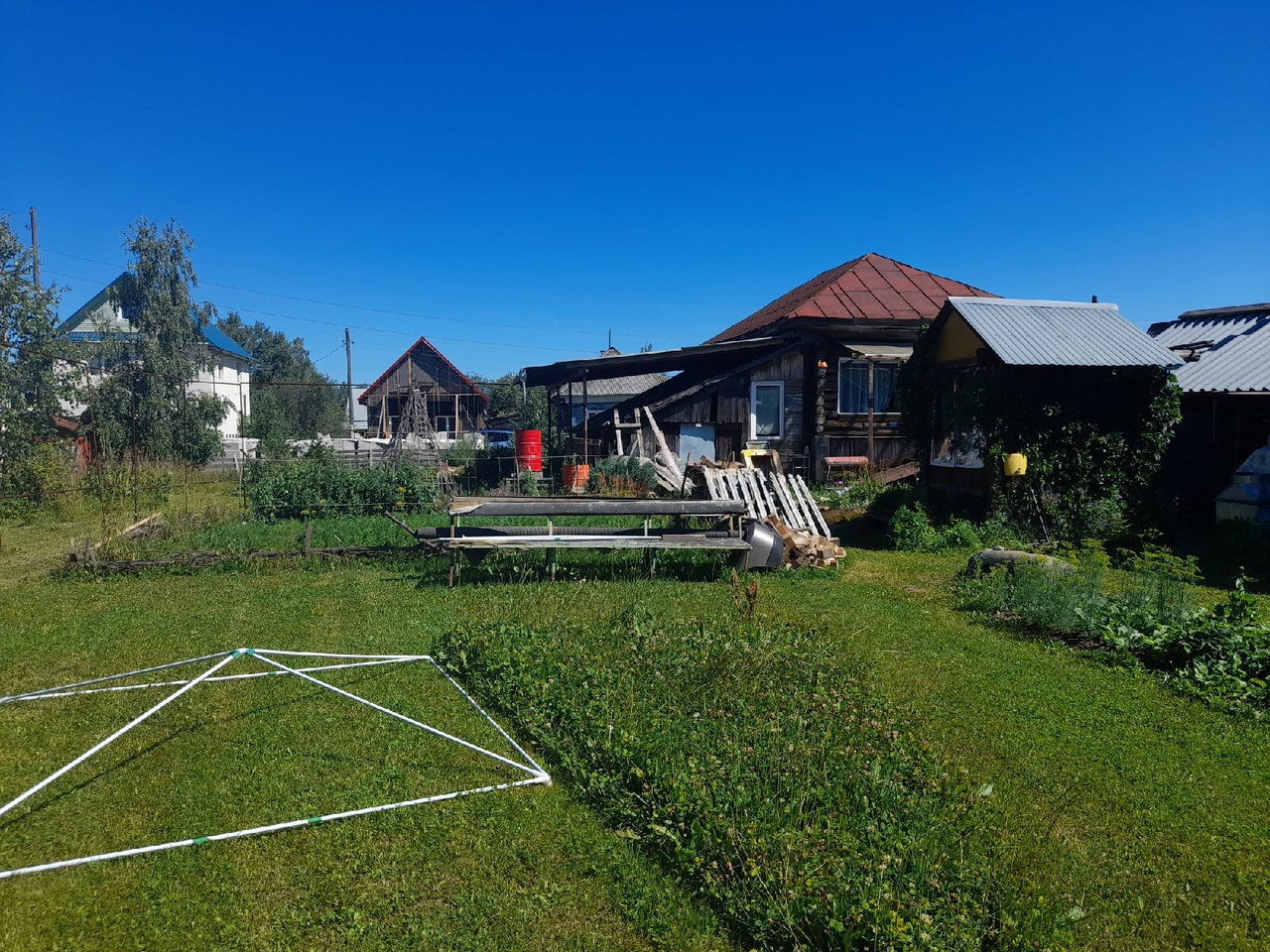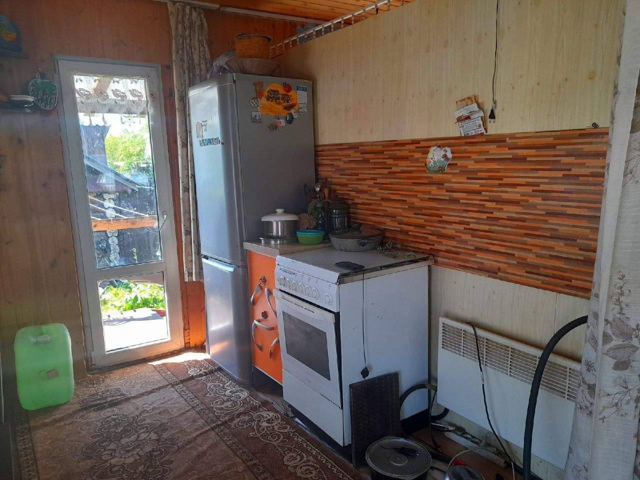 Бревенчатый жилой 1- этажный дом, общей площадью 38 м.кв., прихожая, спальня, гостиная - объединена с кухней (с кухни имеется выход в огород). Отопление электро, центральная канализация, крытый двор, беседка и баня. Земельный участок 12 соток с насаждениями и газоном. Круглогодичный подъезд, адрес, прописка, документы готовы.