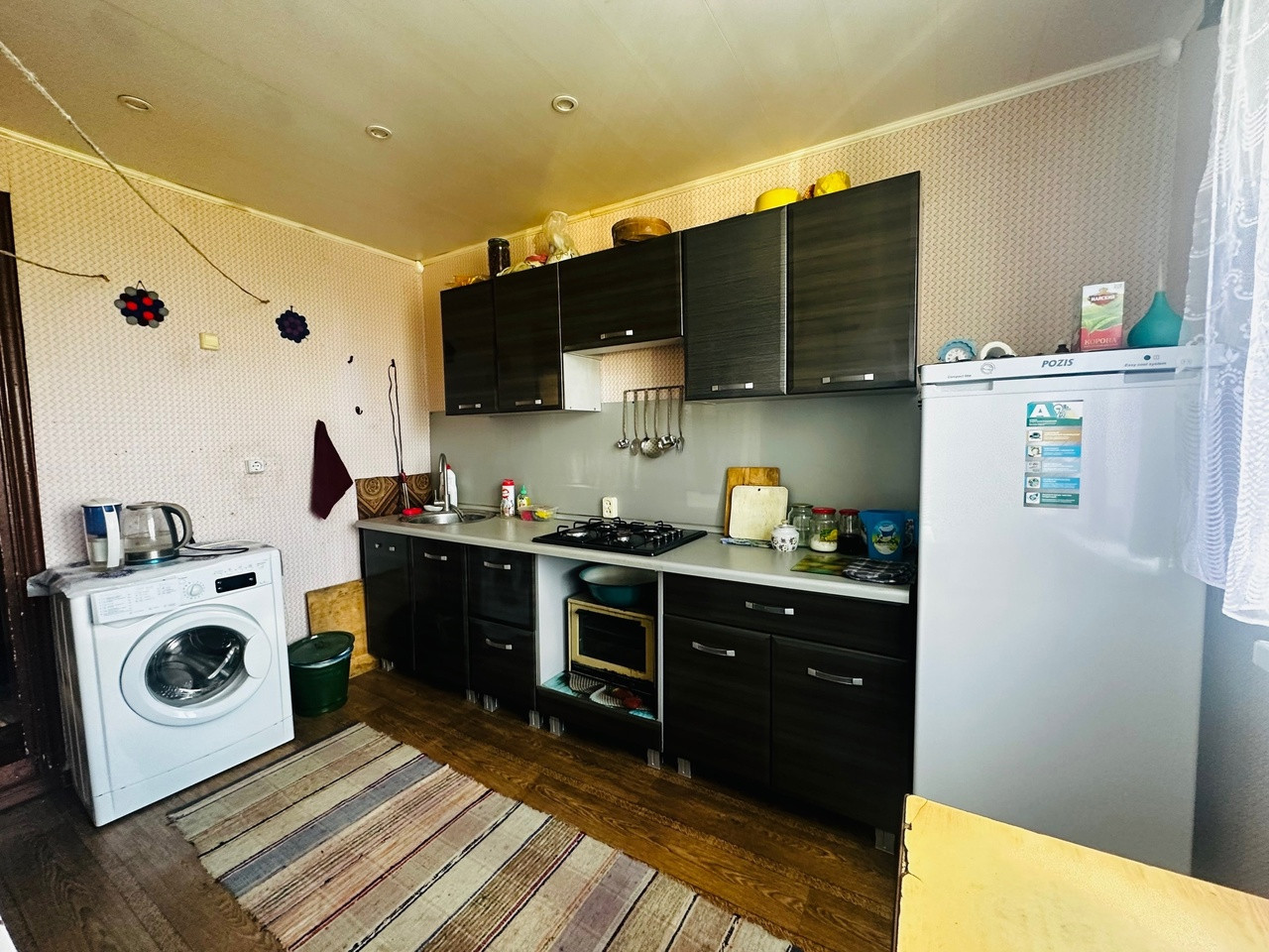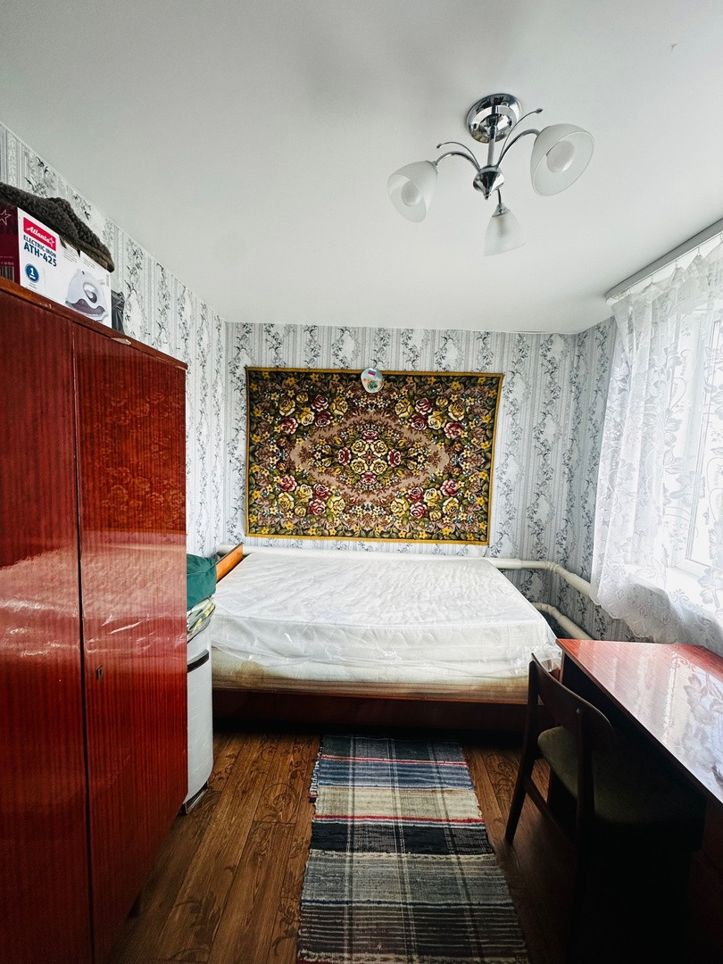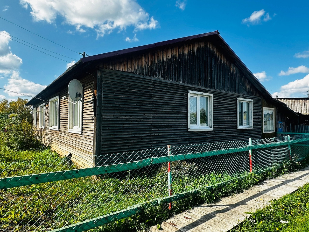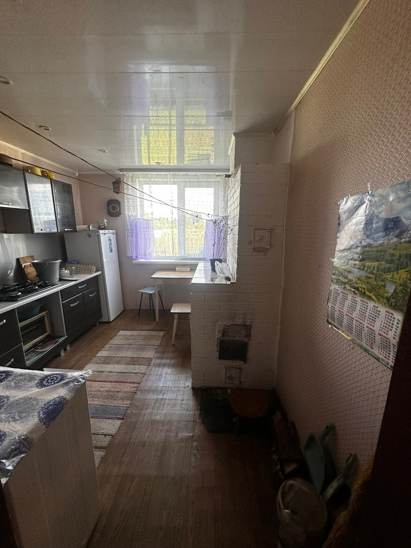 Часть жилого дома, состоящую из 3-х комнат, прихожей, кухни, санузла, общей площадью 57,8 кв.м., комнаты раздельные.Установлены стеклопакеты. Отопление печное+электро. Батареи проведены по всему дому. Центральное водоснабжение. Канализация - выгребная яма. Дом теплый. Крыша - металлочерепица.
