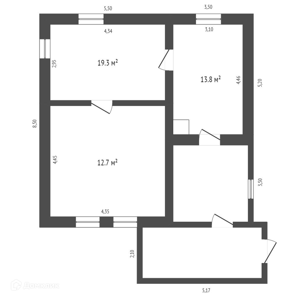 Общая площадь 45.8 м2