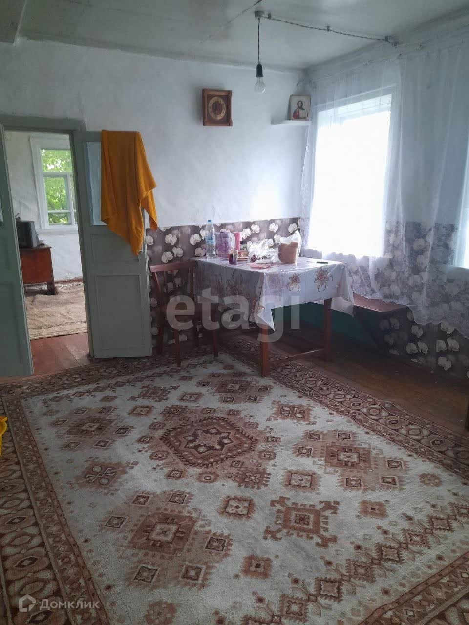 Добротный бревенчатый дом состоит из 3-х комнат, кухни, веранды и кладовой. Отопление печное.
