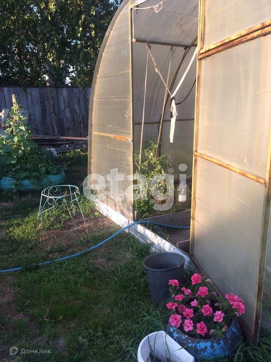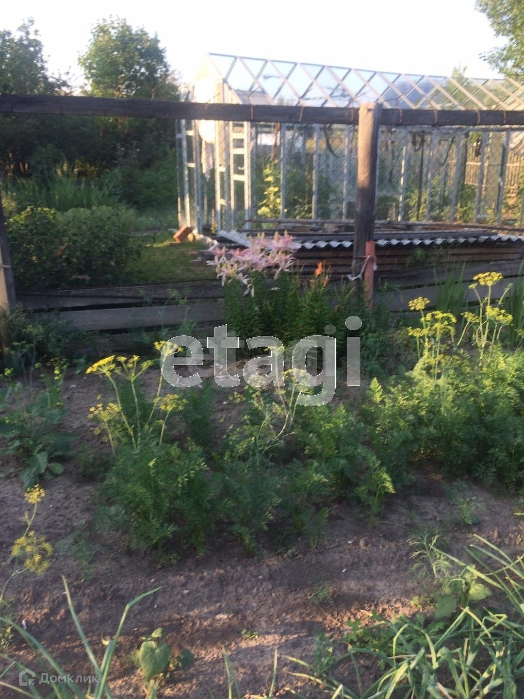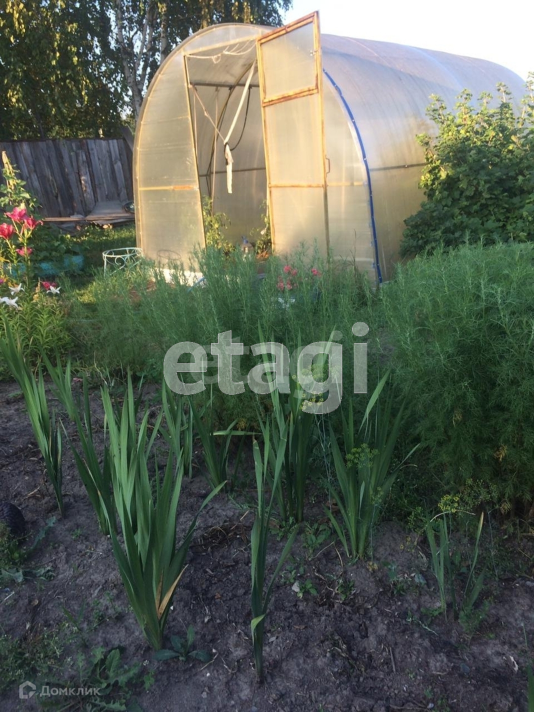 На участке есть скважина, теплица (3*4 м.). Земля удобрена, ухожена, растут вишни, яблоня, смородина, крыжовник, жимолость, малина.
