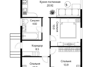 Общая площадь: 82 м2