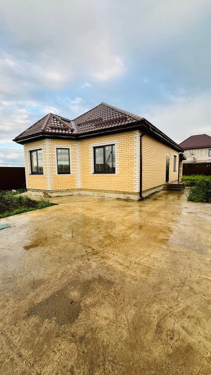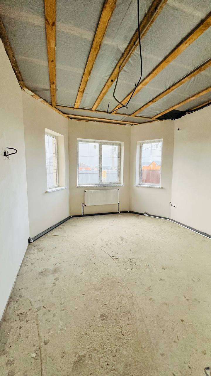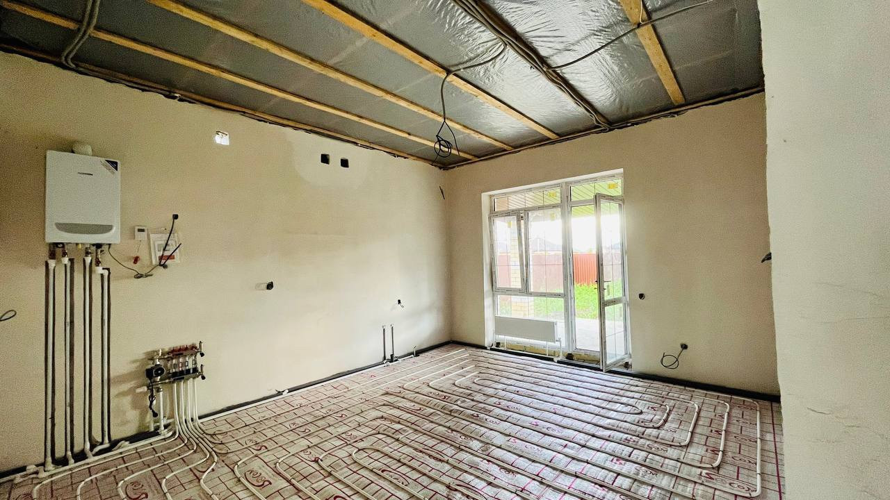 Дом 90м2, 3 комнаты+ большая кухня -гостиная в предчистовой отделке, отмостка вокруг дома, терраса в подарок, парковочное место, теплый пол с электрокотлом, септик 10м3, скважина, откатные ворота