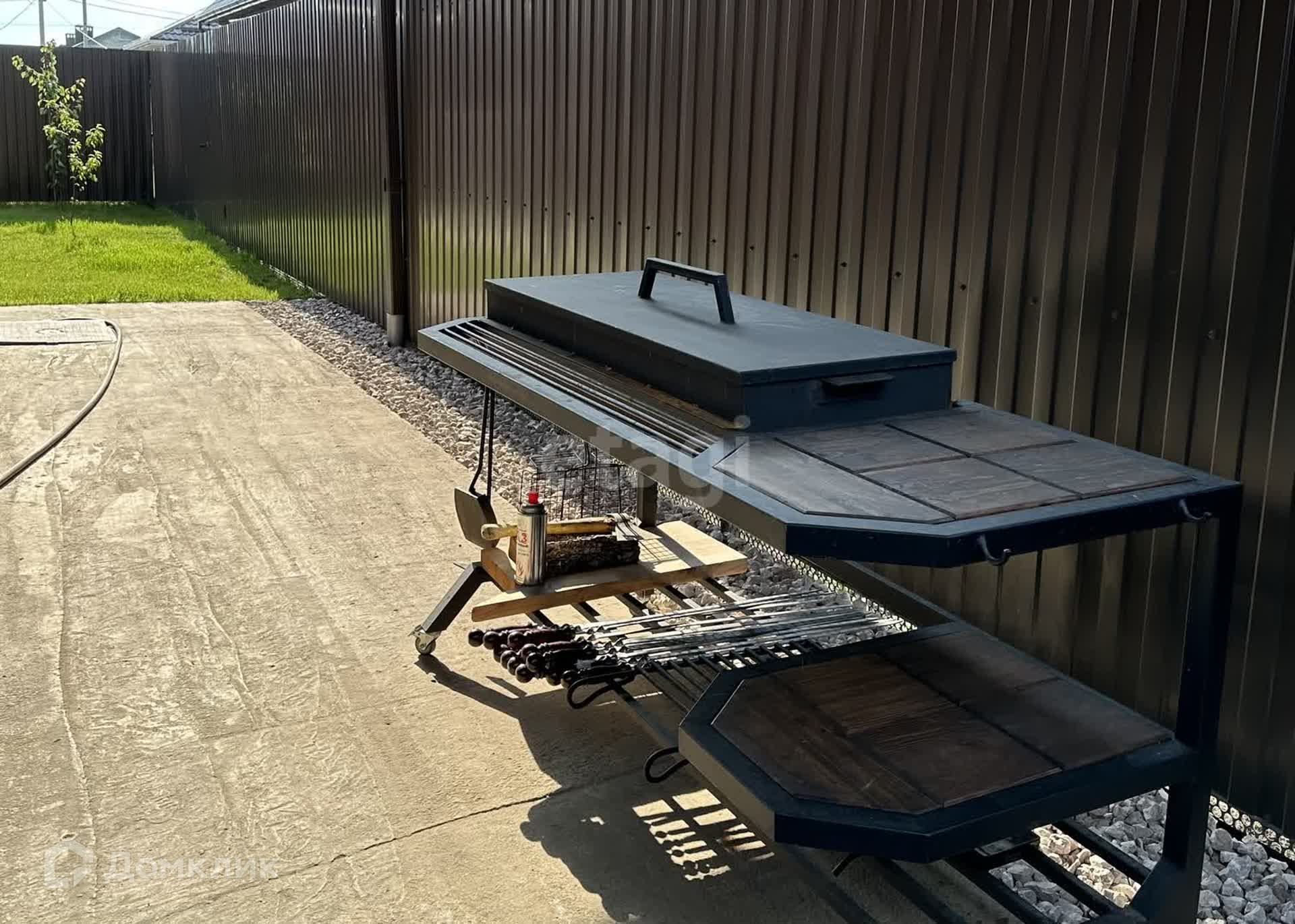 Двор забетонирован,ворота элeктричeские, парковкa на 2 aвтoмобиля, озеленениe двoра