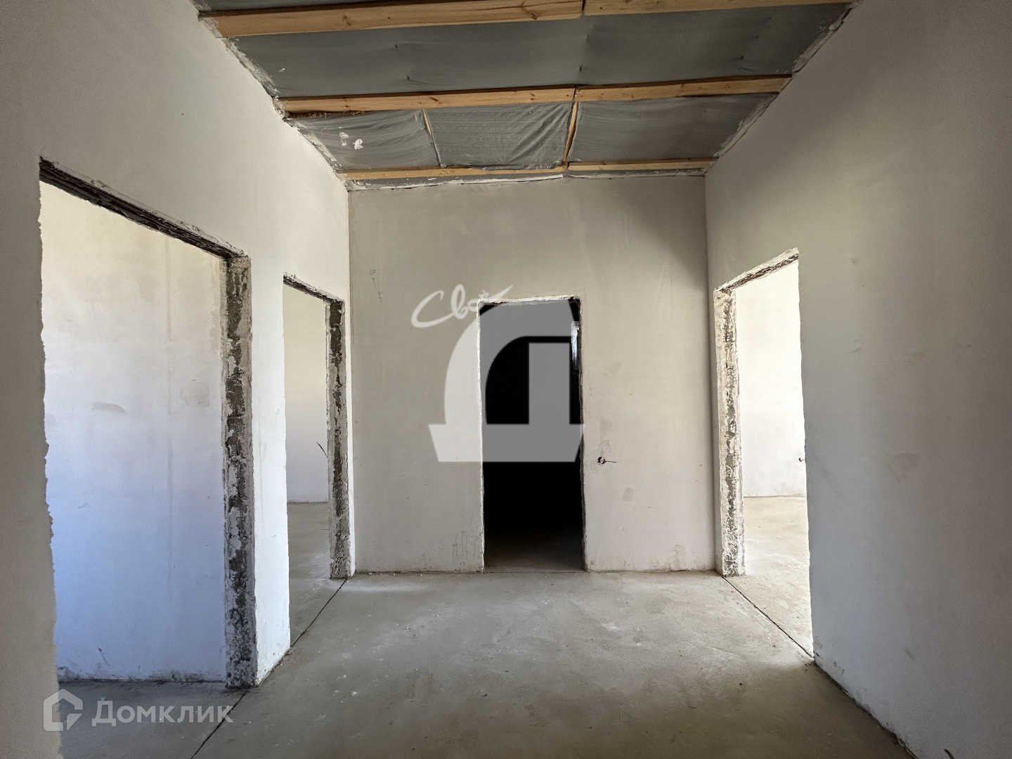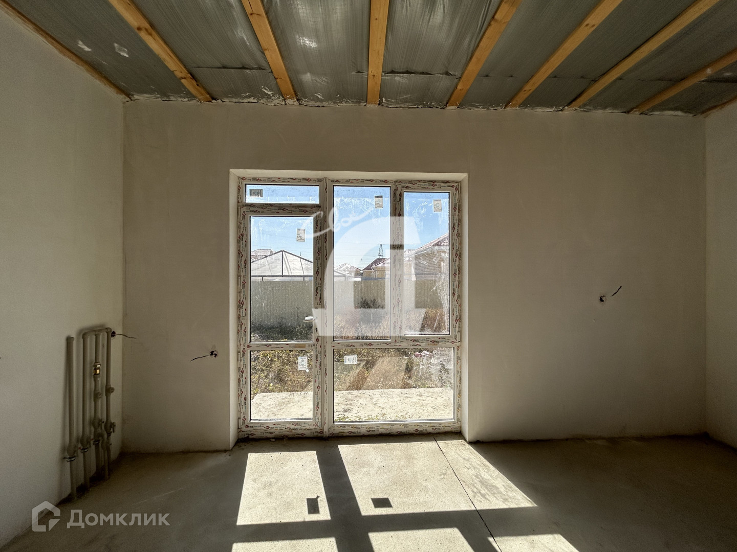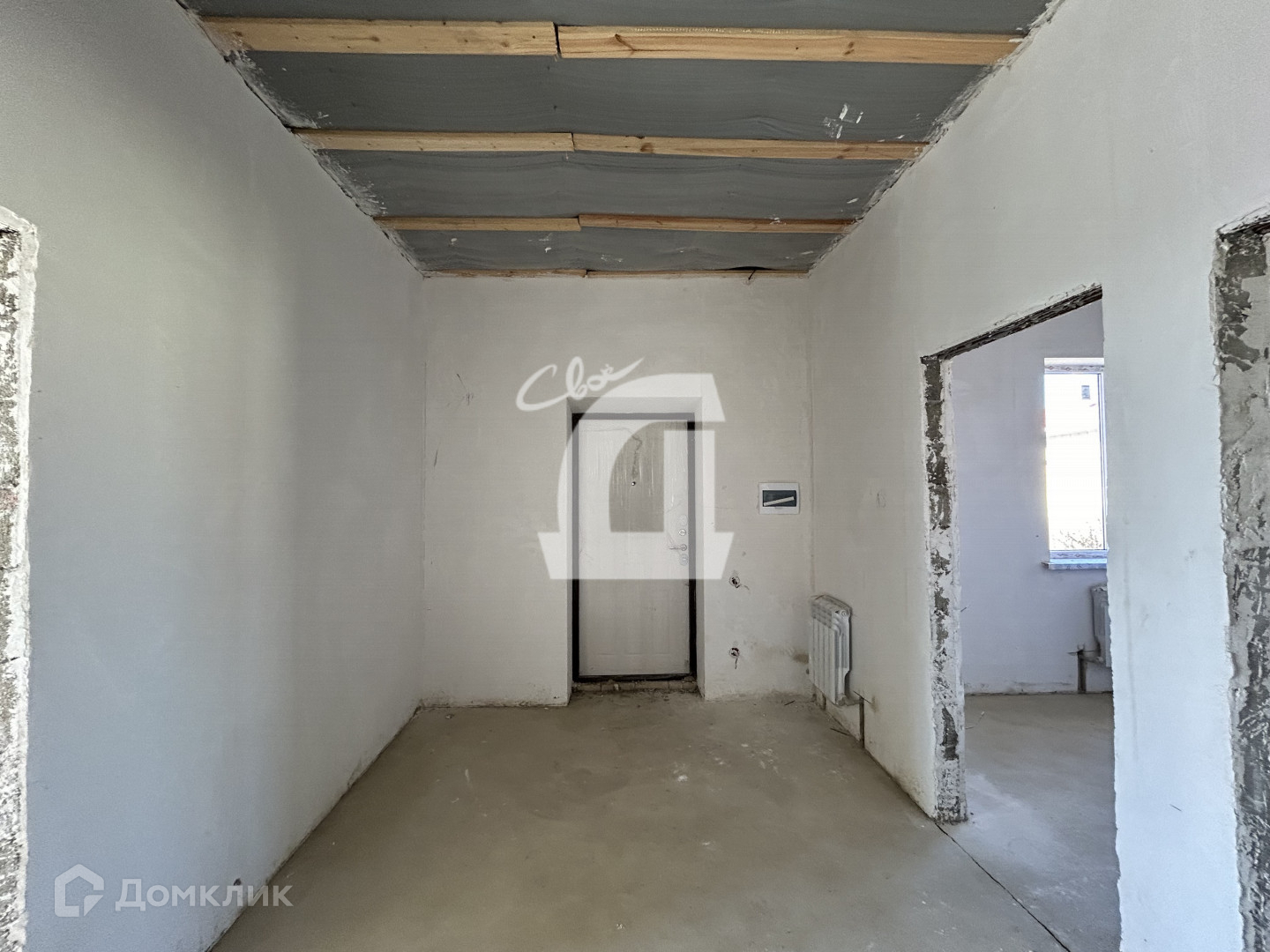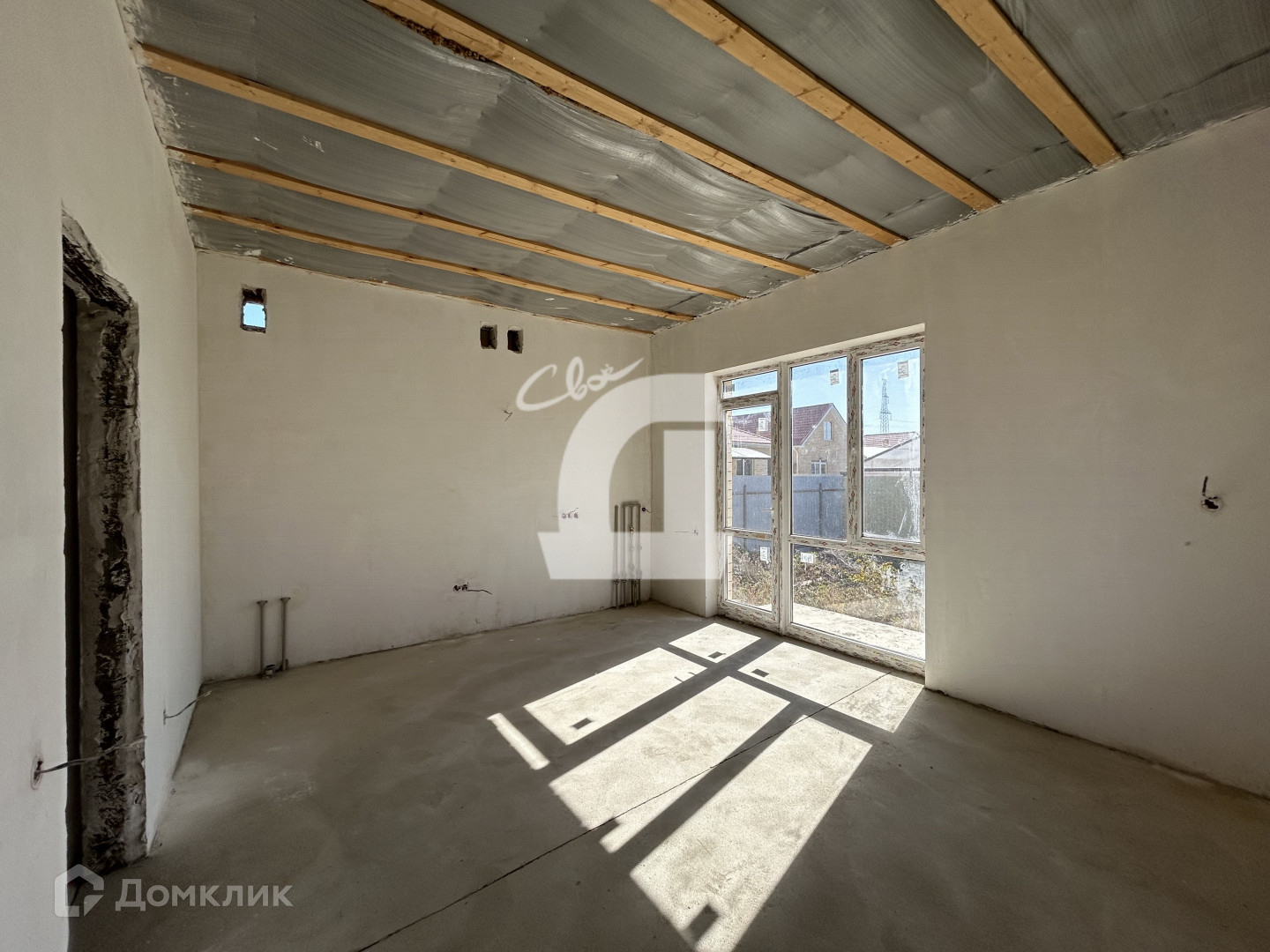 Просторная планировка 2 изолированные комнаты и большая кухня-гостиная с выходом на террасу. В доме выполнена предчистовая отделка, разведено электричество,  выполнены сантехнические работы, установлены радиаторы отопления и электрический котел.