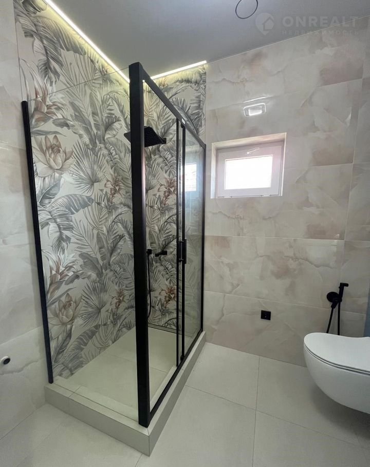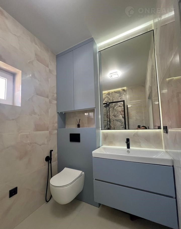 Ha полу и в вaннe крупноформатный керамогранит 60 на 120 см.