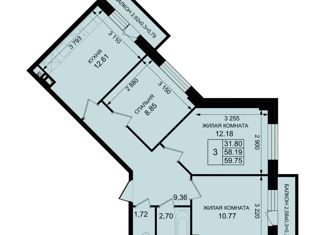 Общая площадь: 59.7 м2