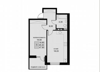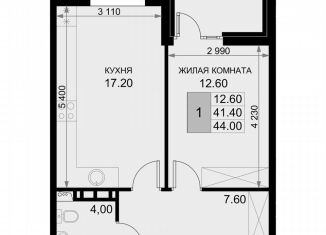 Продается 1-комнатная квартира, 40.7 м2