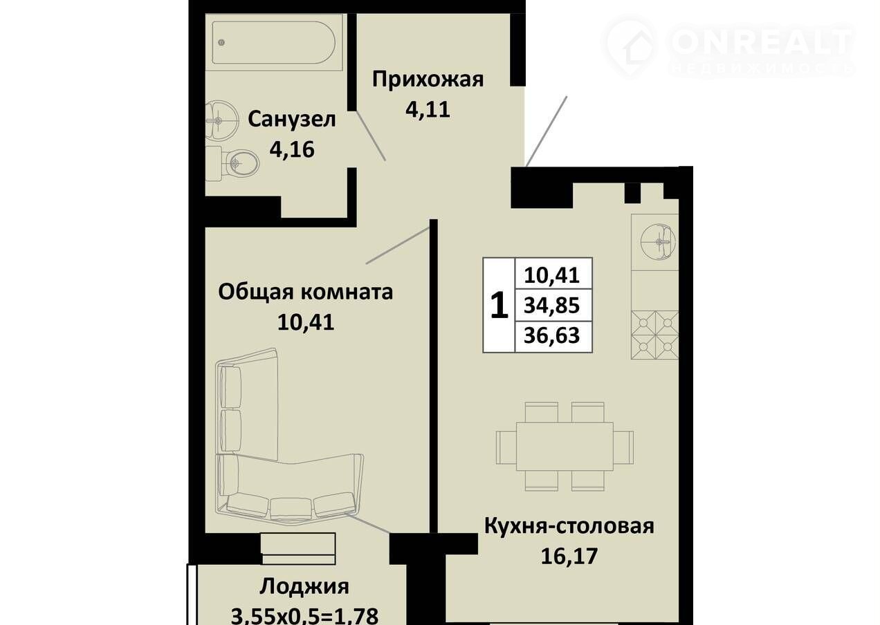 Балкон, лоджия 1 лоджия