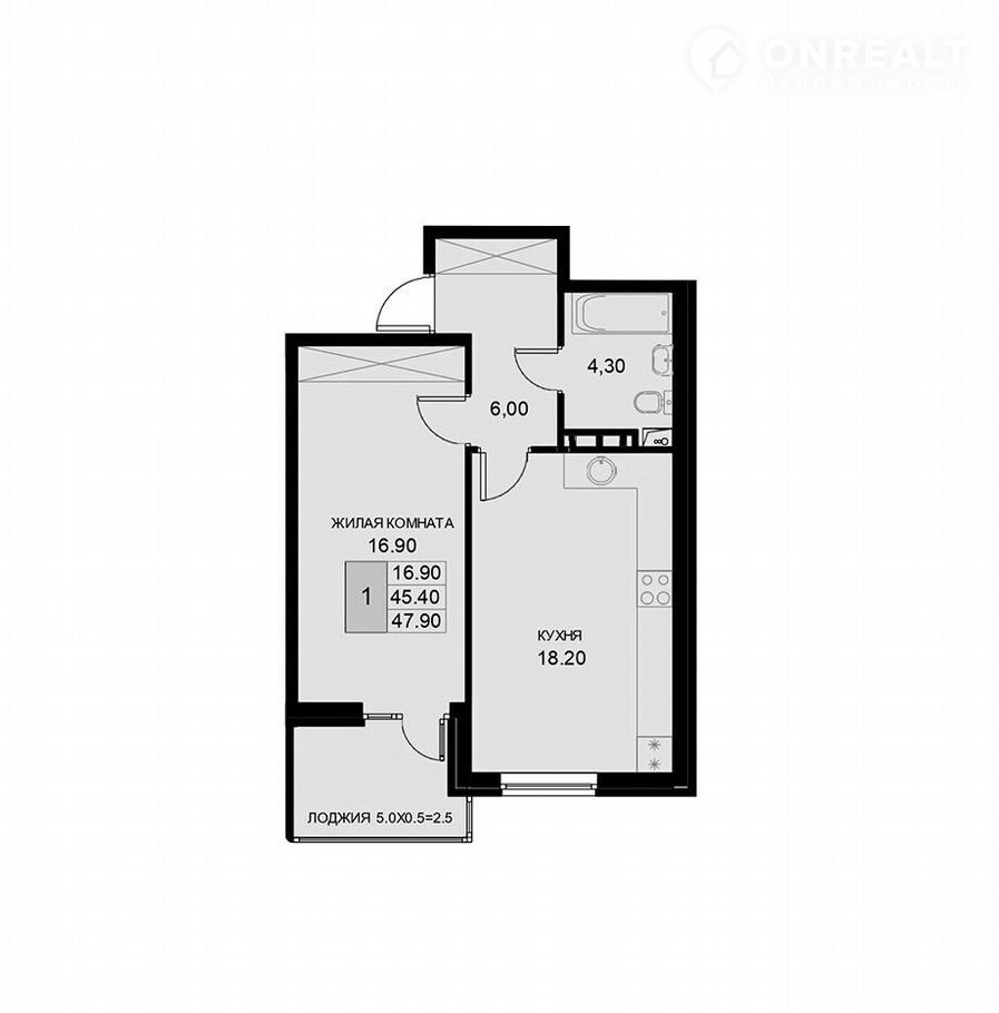 Балкон, лоджия 1 лоджия