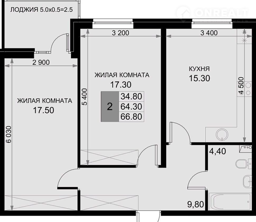 Общая площадь 66.8 м2