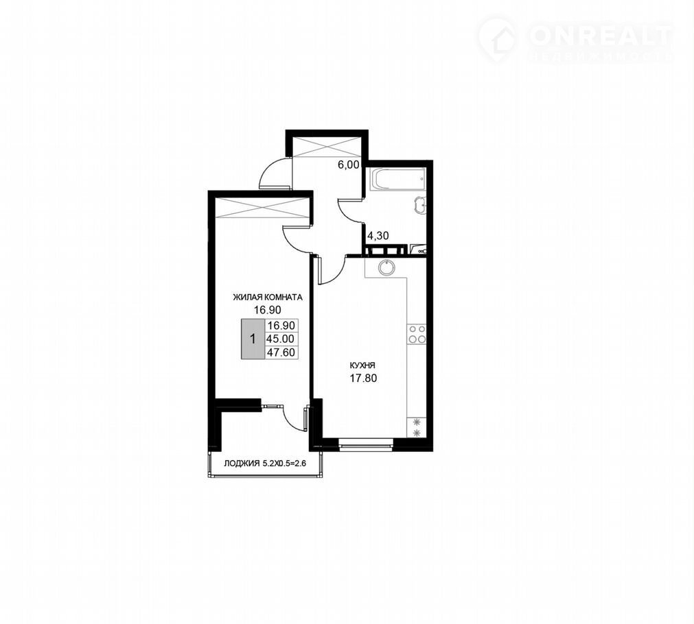 Балкон, лоджия 1 лоджия