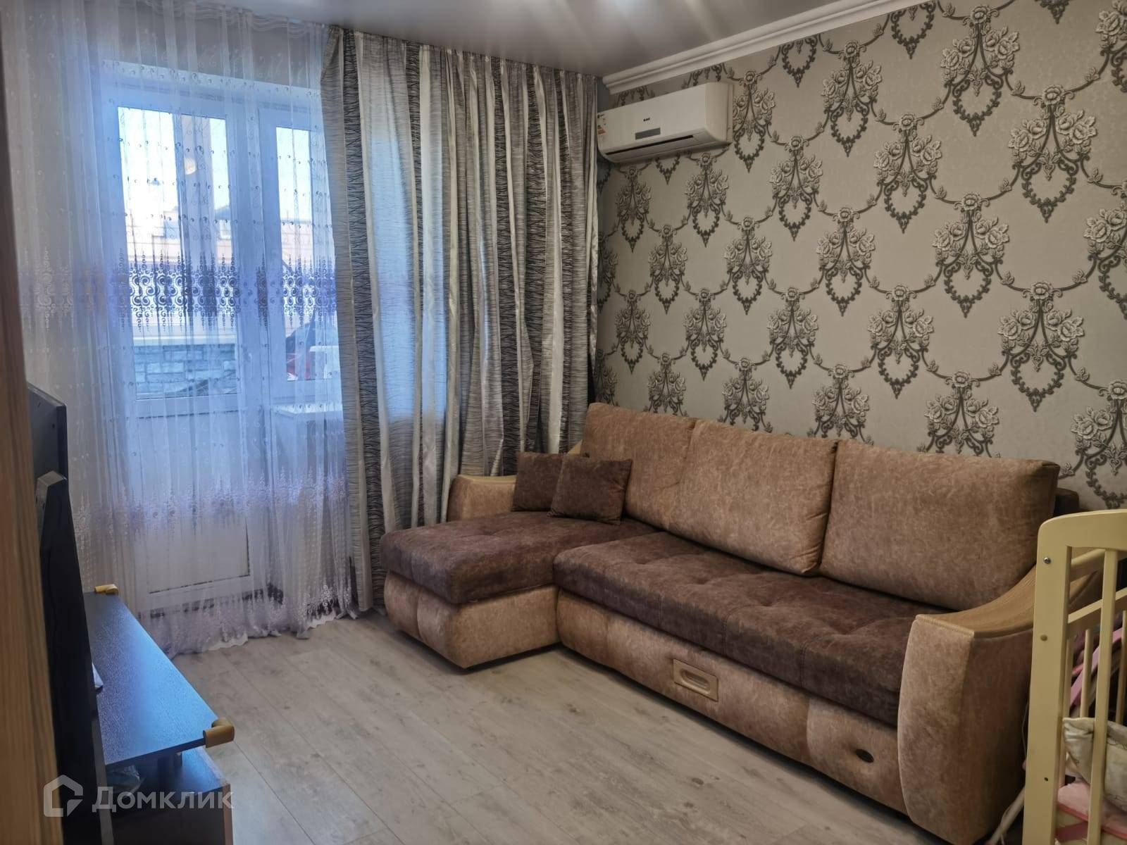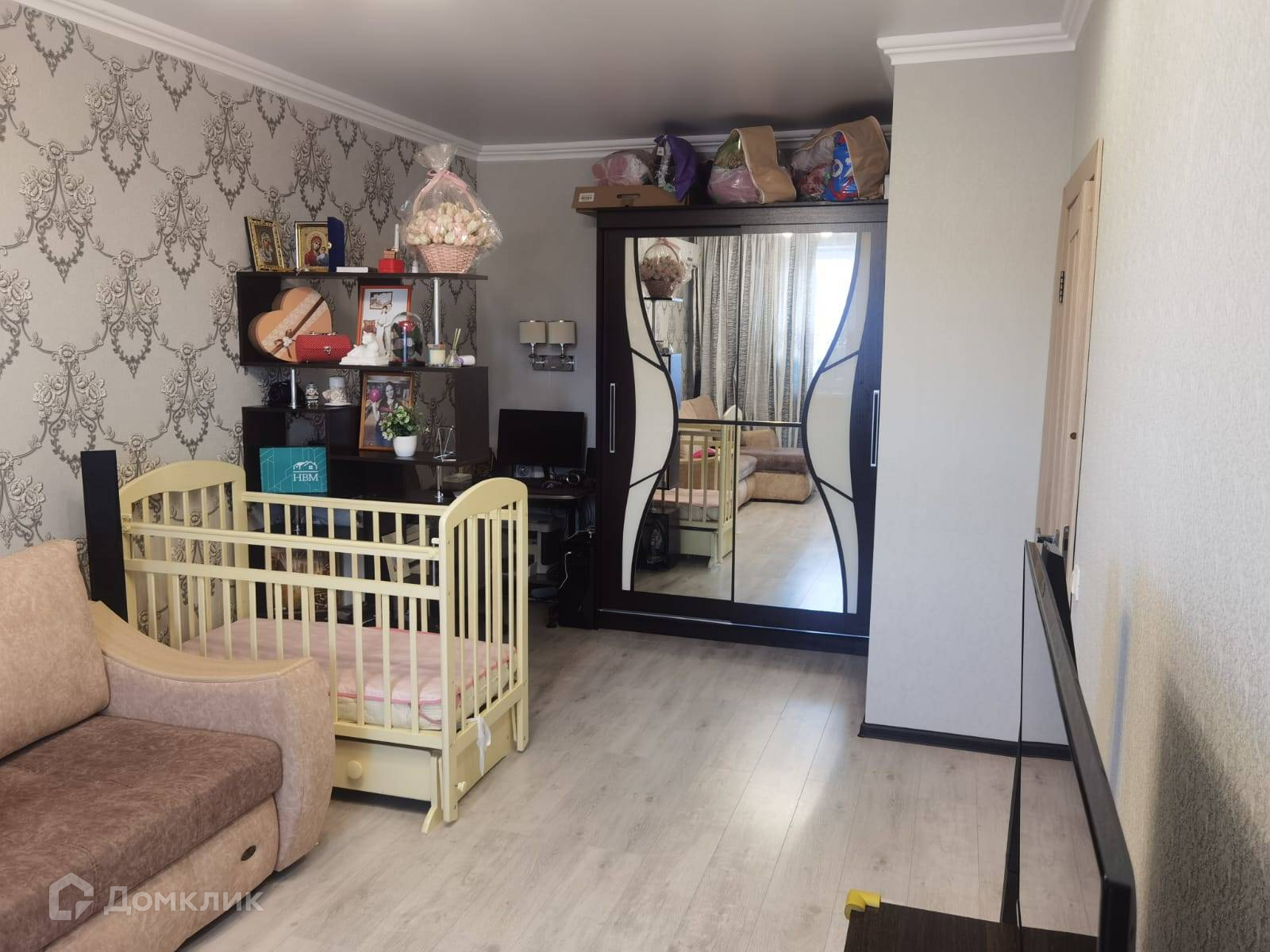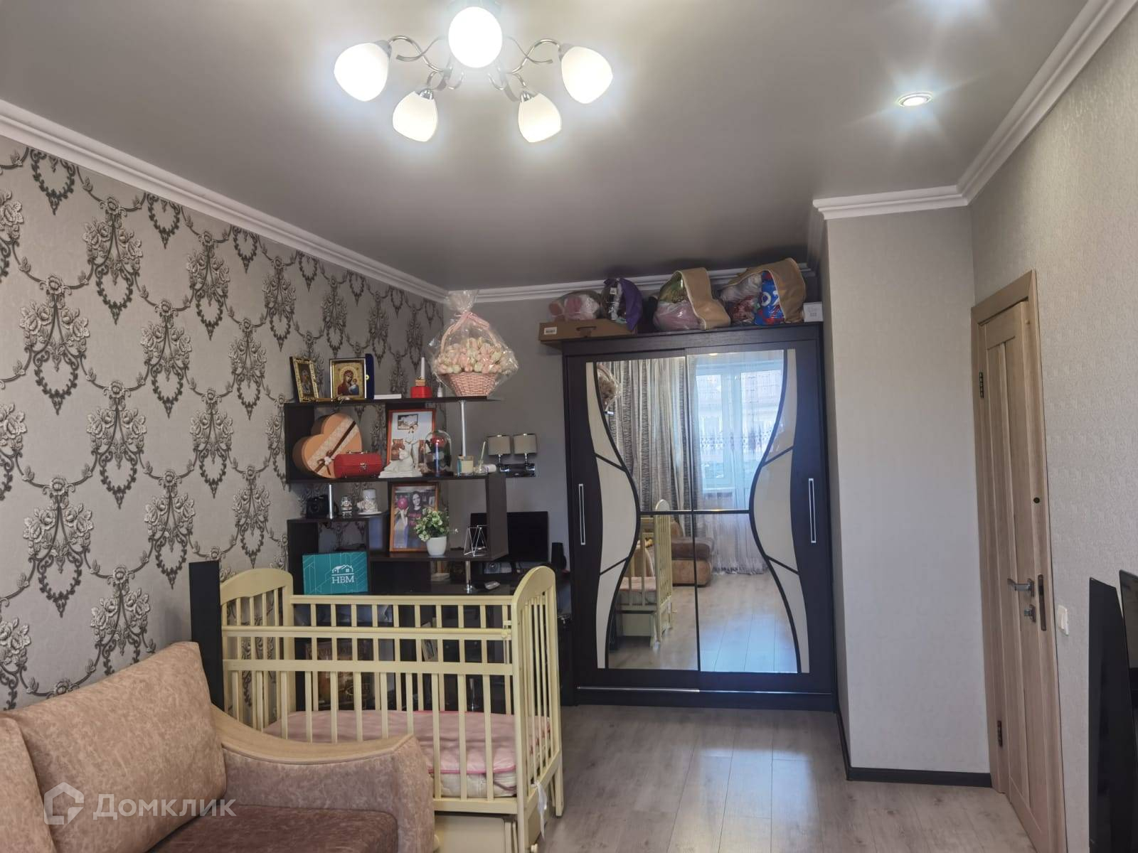 - поклеены современные обои, на полу ламинат,