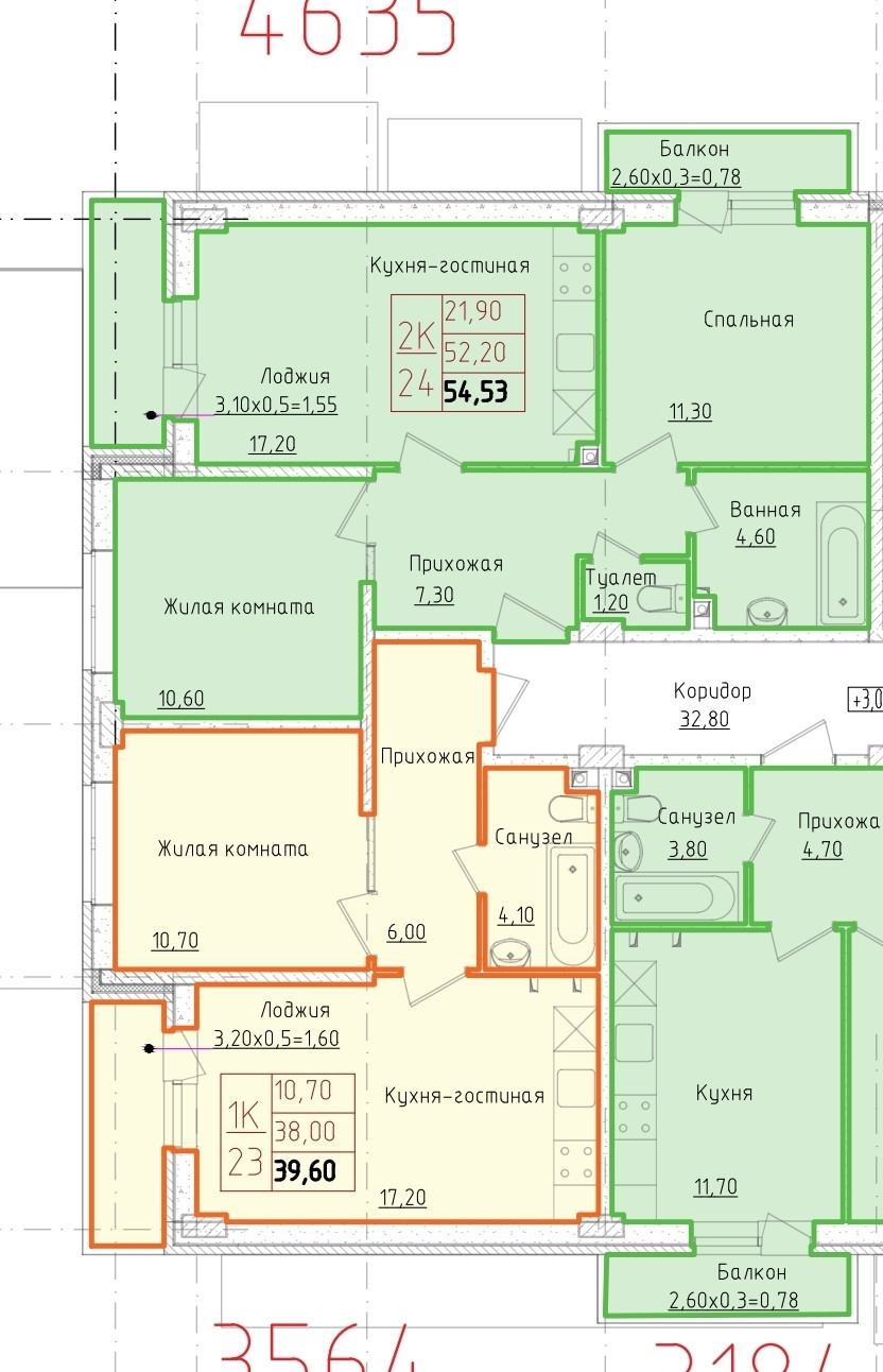 Общая площадь 54.53 м2