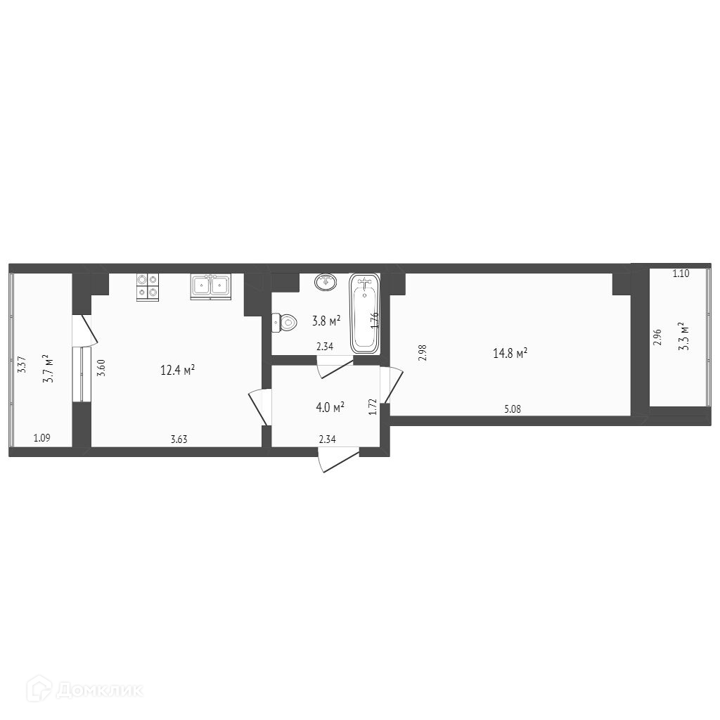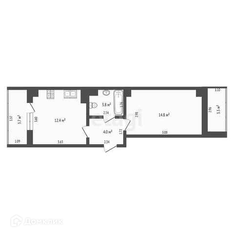 Площадь кухни 12.4 м2