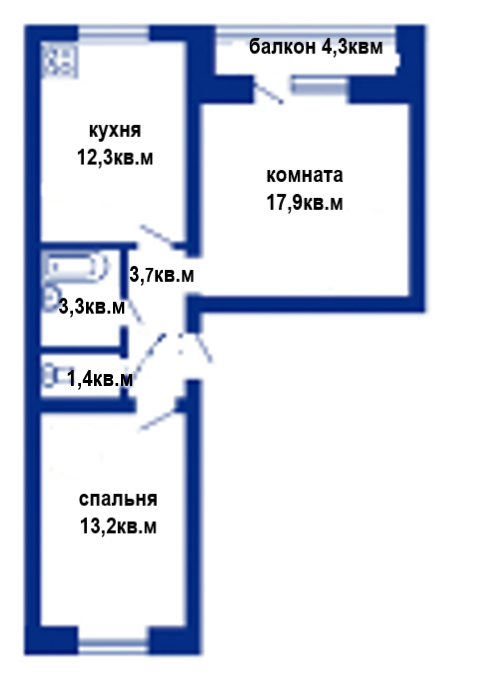 Общая площадь 51.8 м2