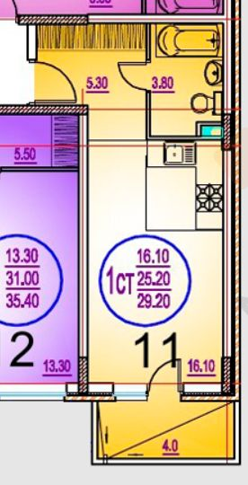 Площадь кухни 2 м2
