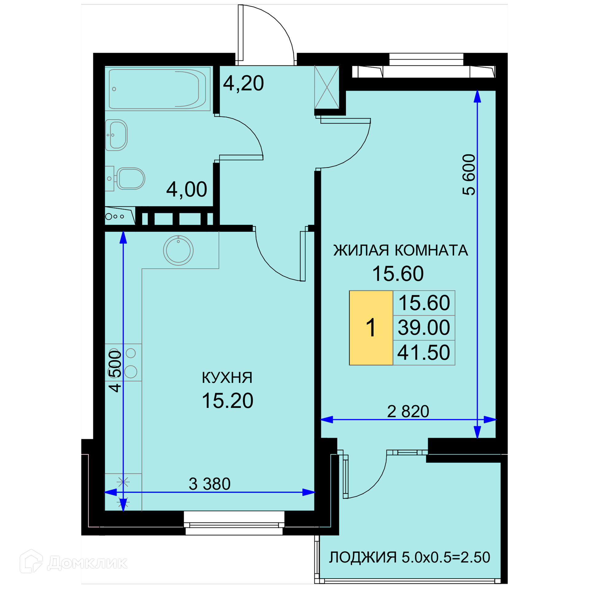 Общая площадь 41.5 м2