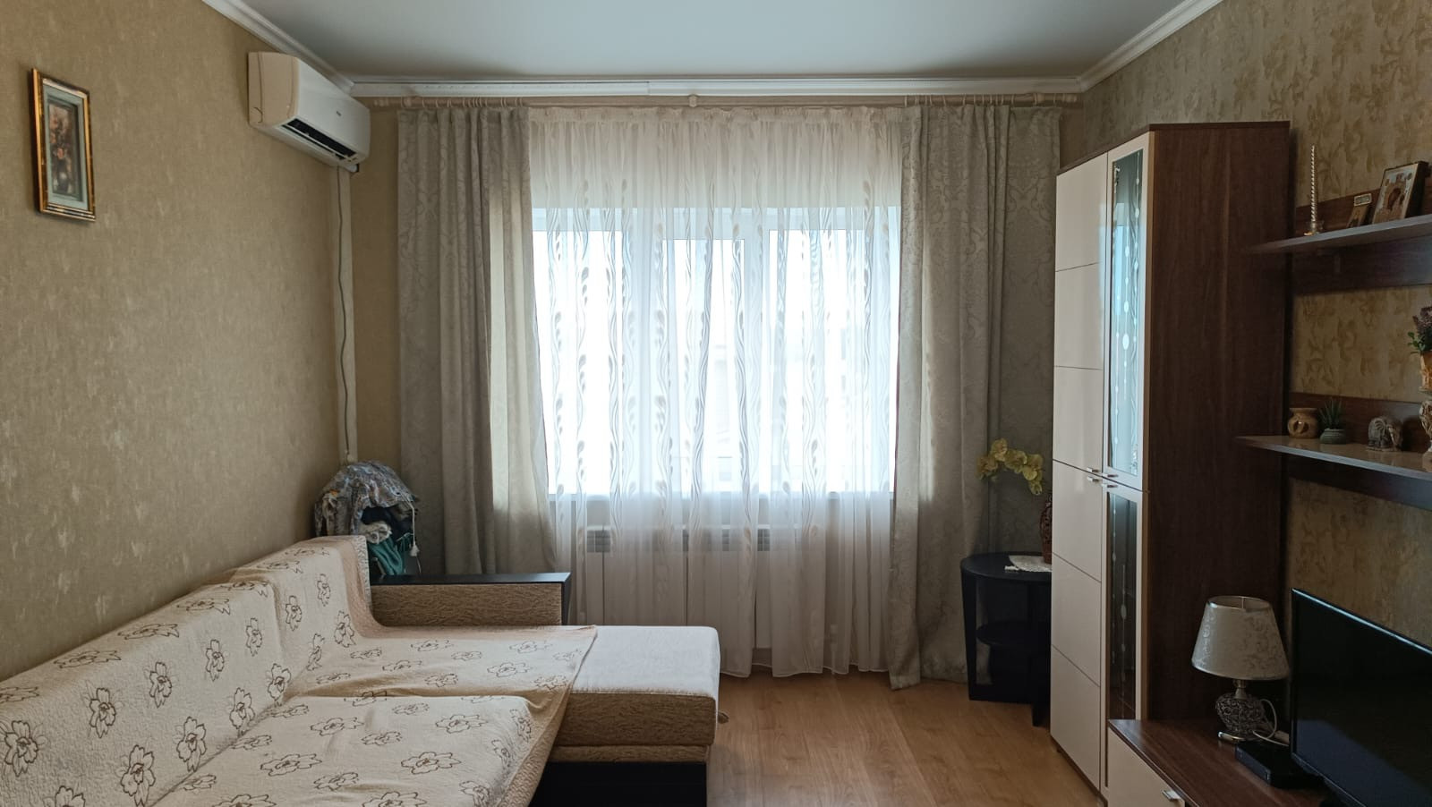 Продам, 1 ком. квартира 41.3 м2, этаж 3/4. Кухня  10 м2, комната 21 м2. Чистая, уютная квартира, сделан хороший ремонт, частично меблированная. Эта квартира для долгих гармоничных семейных отношений. Дом расположен в центре п. Южного, развитая инфраструктура, рядом детский садик, магазины , остановка общественного транспорта, так же есть возможность добраться до города на электричке ( 6 раз в день)