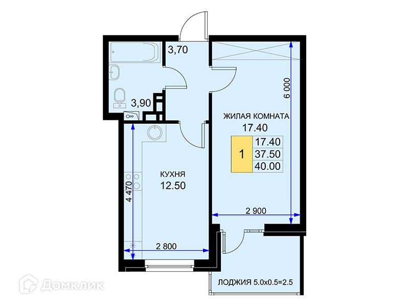 Общая площадь 40 м2