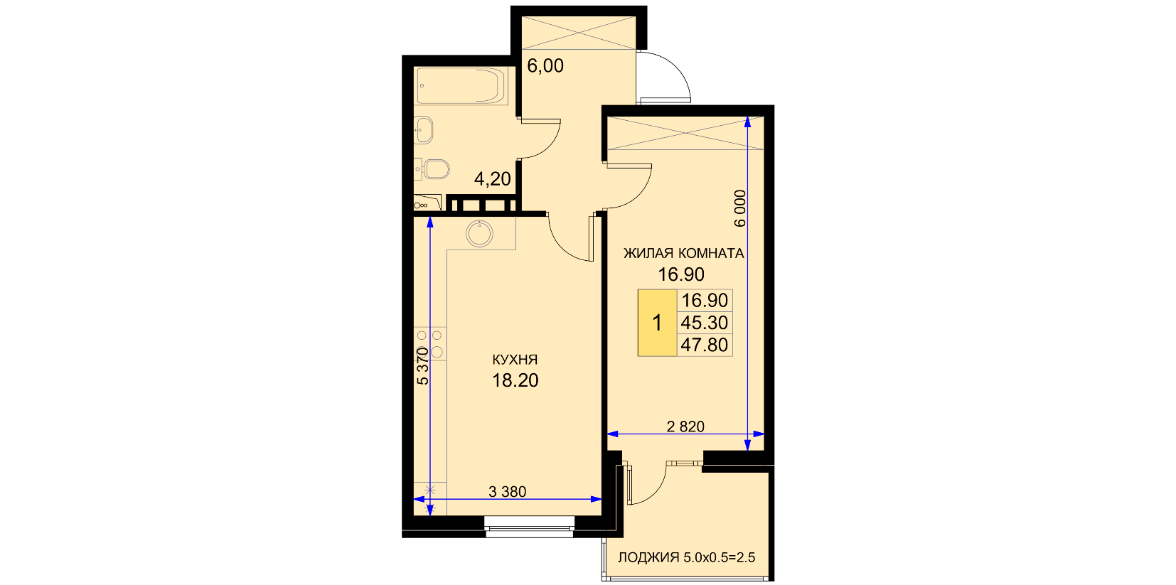 Площадь: 47,8 м²