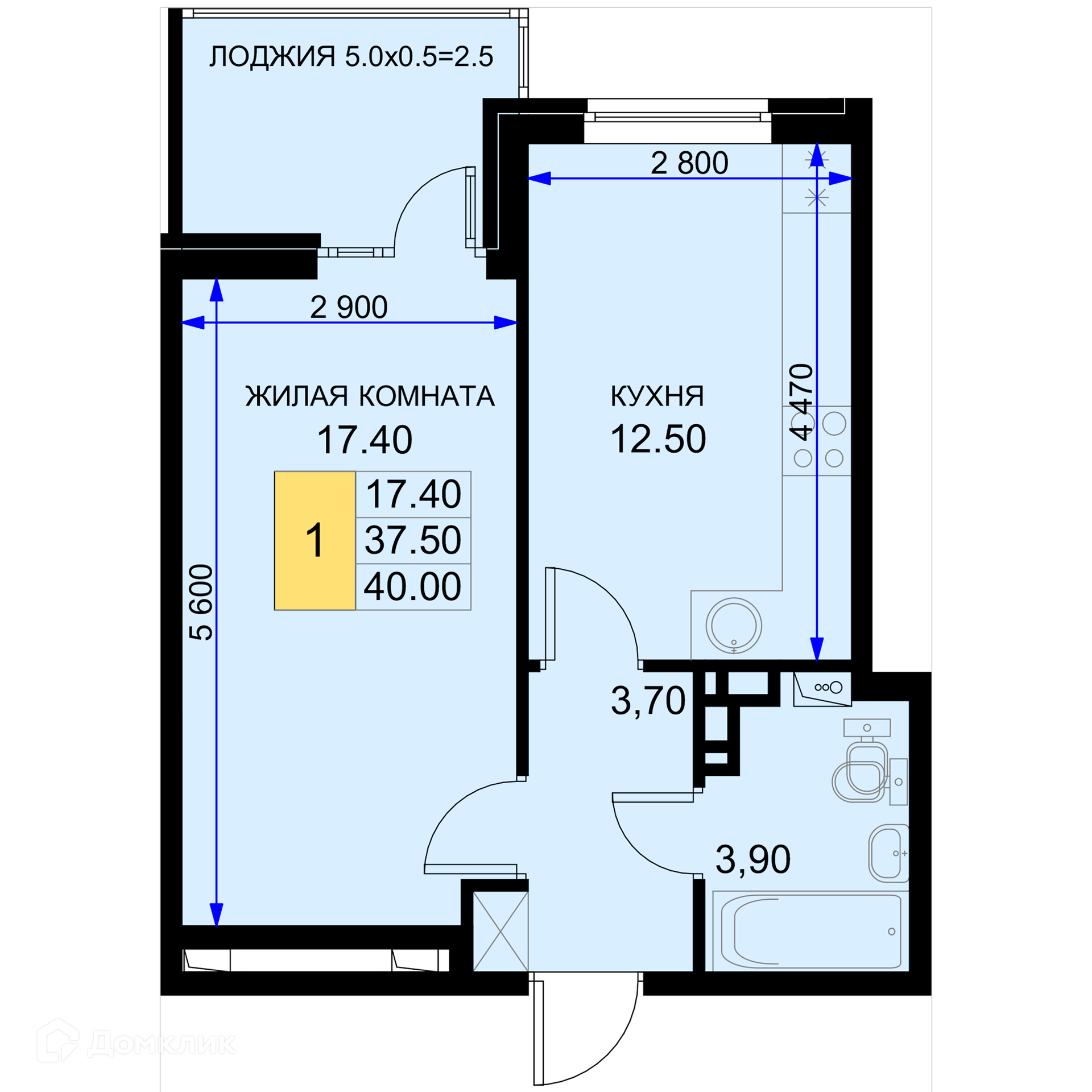 Общая площадь 40 м2