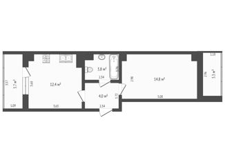 Общая площадь: 34.4 м2