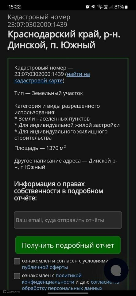 Угловой участок.  Кадастровый номер: 23:07:0302000:1439