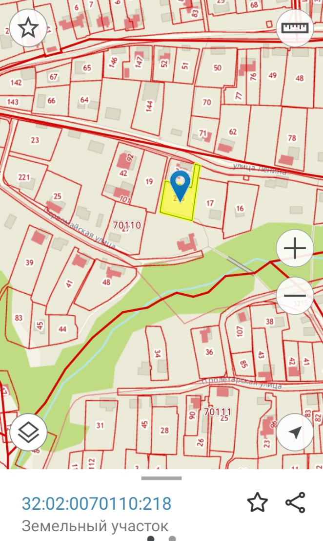 Продам участок (ИЖС) правильной формы.Заезд на участок с ул. Ленина 23(центральная улица) с левой стороны от дома, где растёт дерево. Границы участка выделены жёлтым цветом, адрес присвоен. На участке есть газ, свет. Рядом остановка общественного транспорта, школа, магазин (5 мин. пешком). Торг уместен.