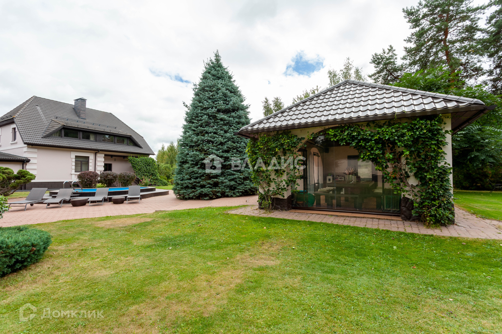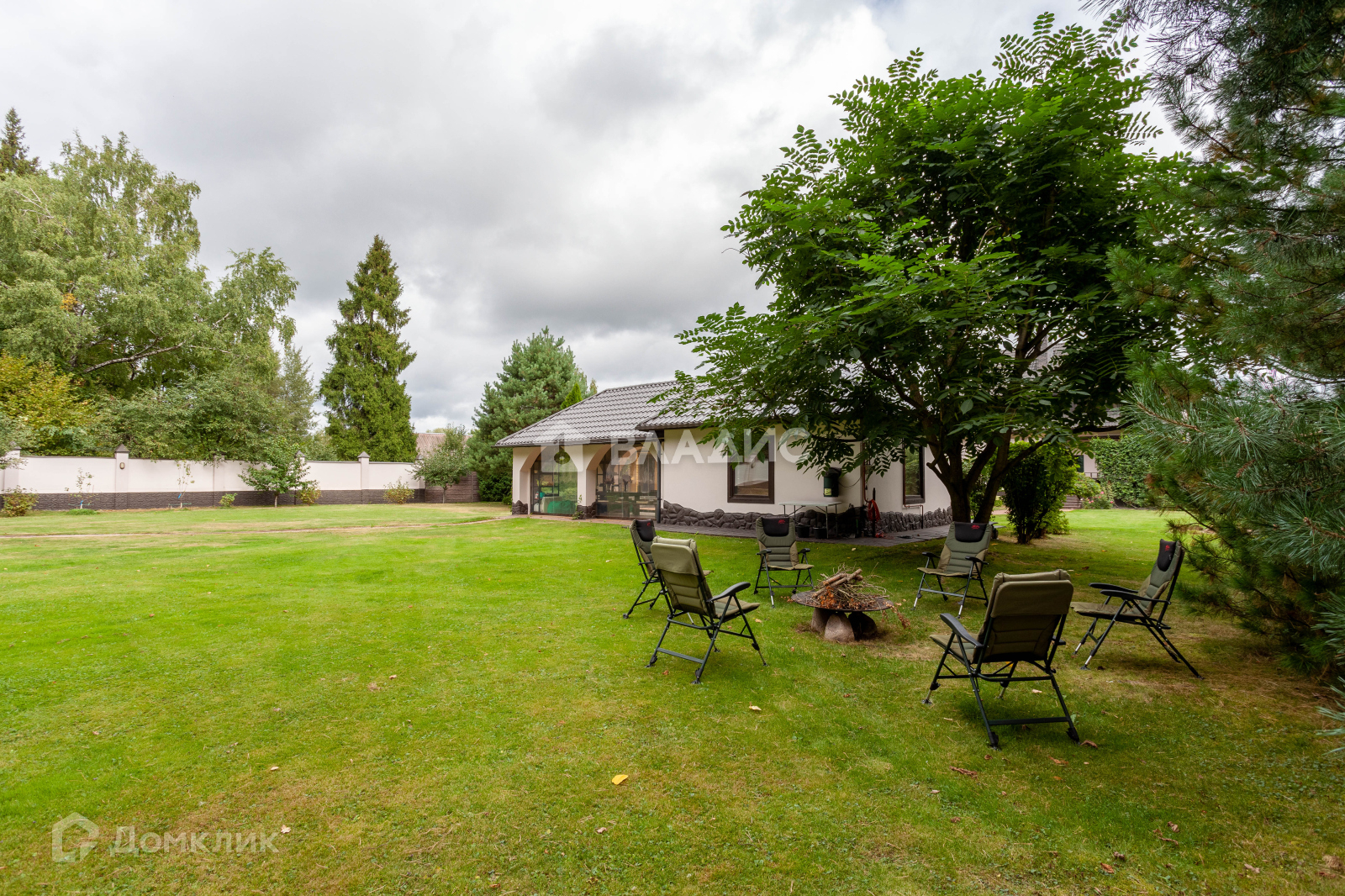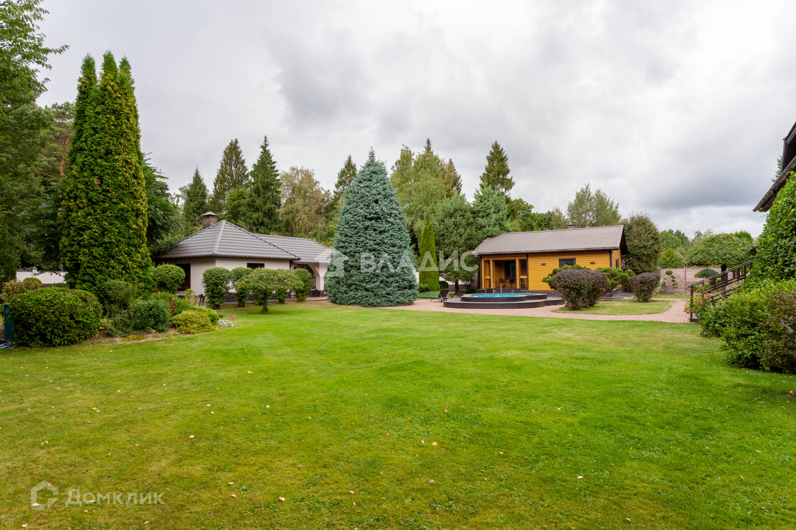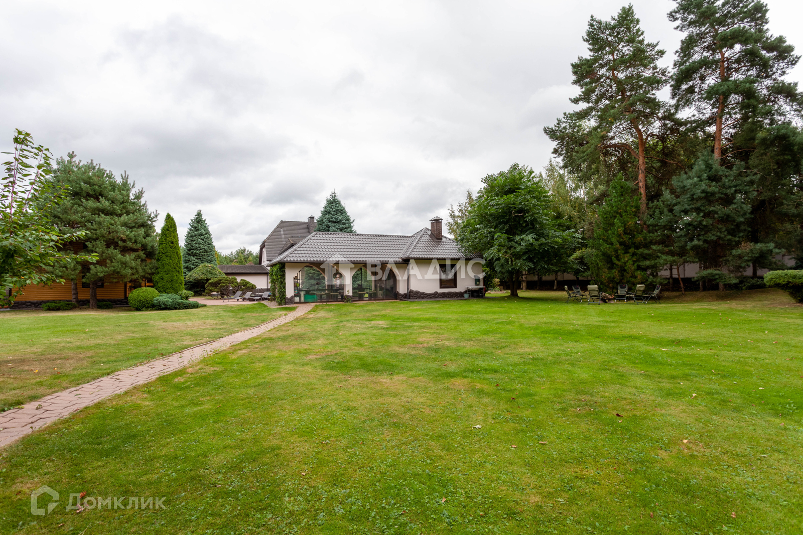 Общая площадь построек 850 м2, включает в себя: основной дом, крытый гараж на 2 м/м, гостевой дом с сауной, дом для персонала и летняя кухня с террасой.