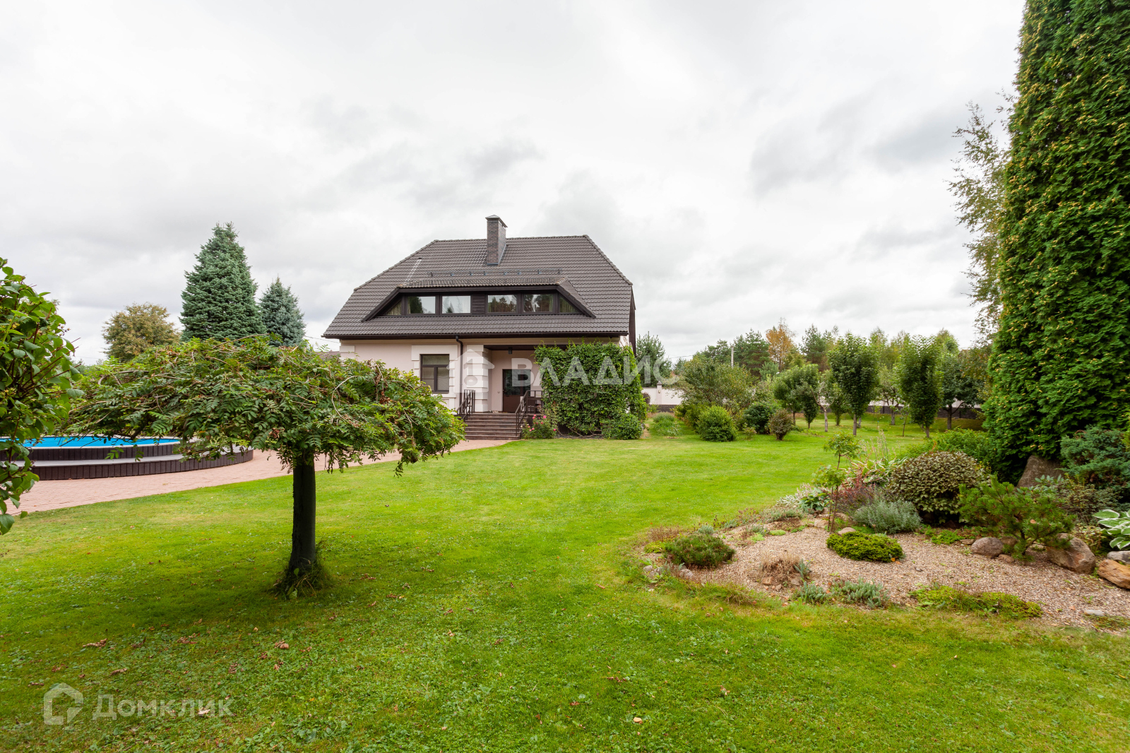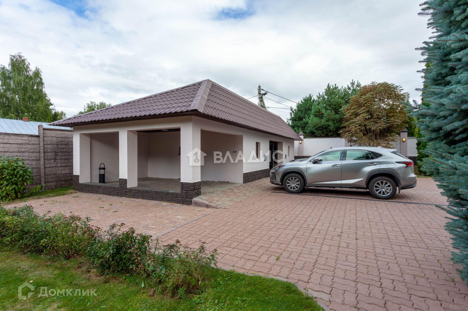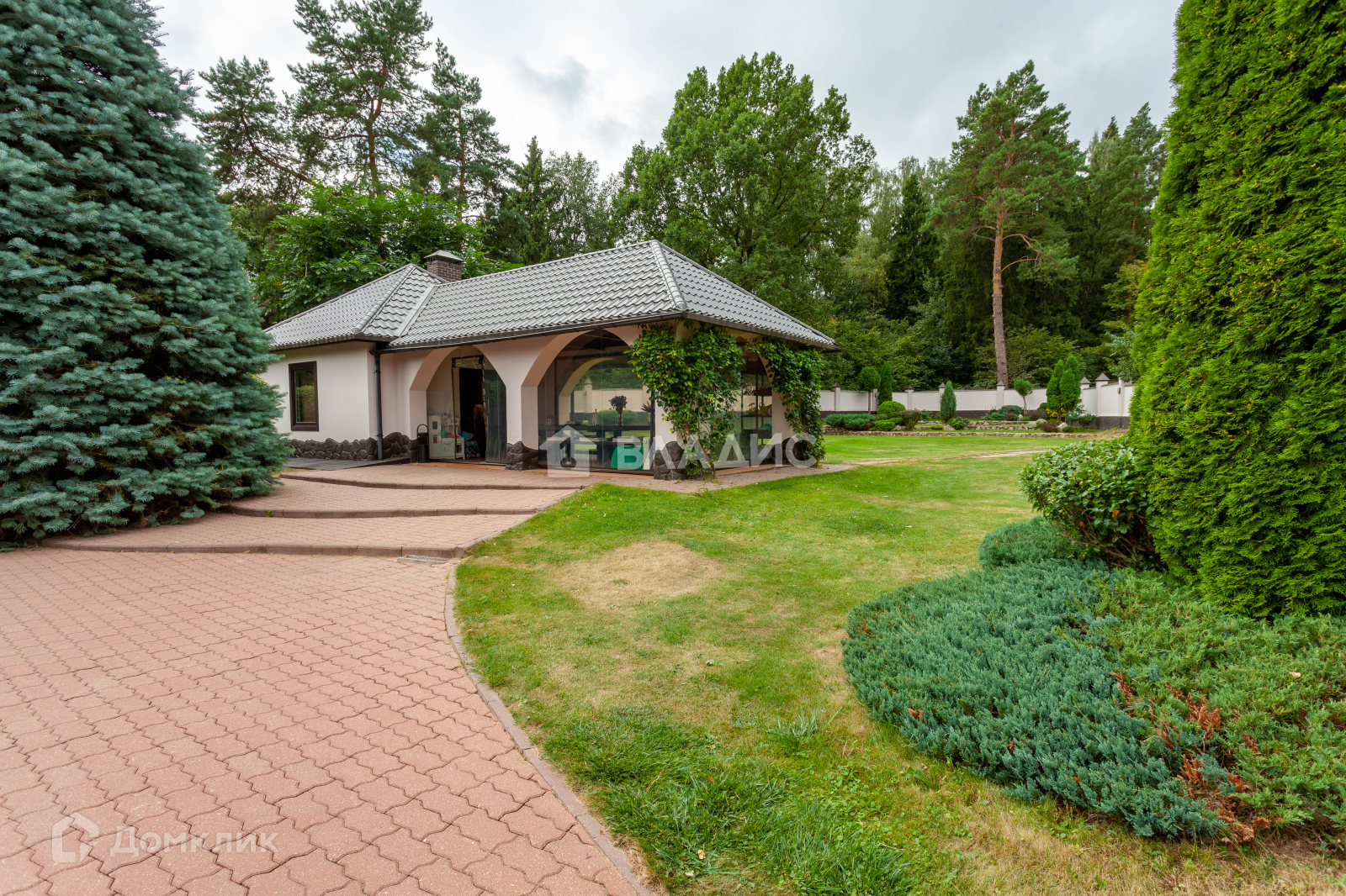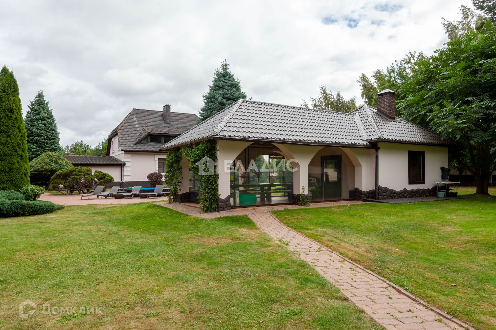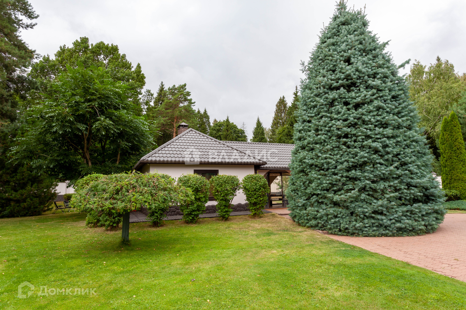 Общая площадь построек 850 м2, включает в себя: основной дом, крытый гараж на 2 м/м, гостевой дом с сауной, дом для персонала и летняя кухня с террасой.