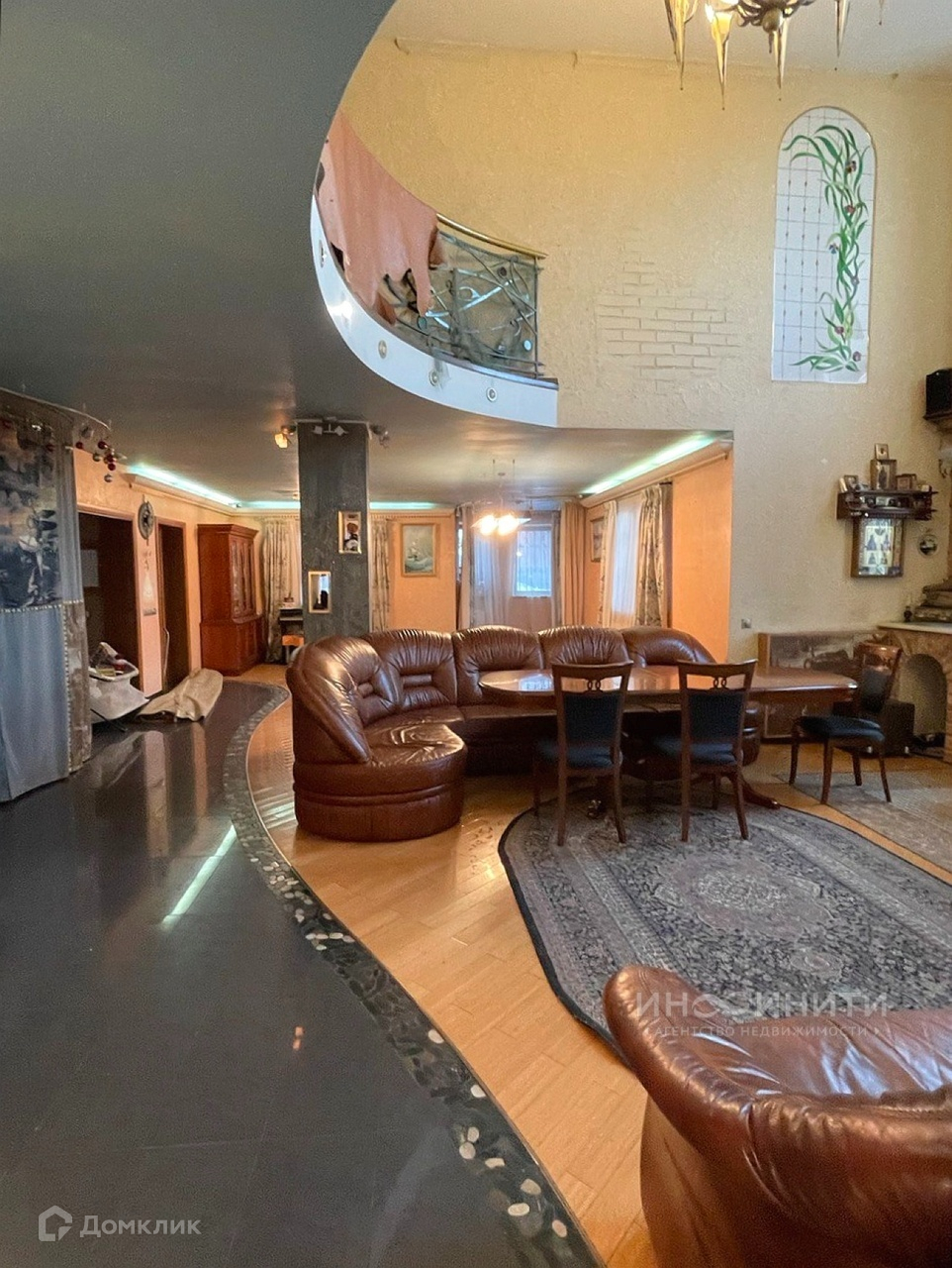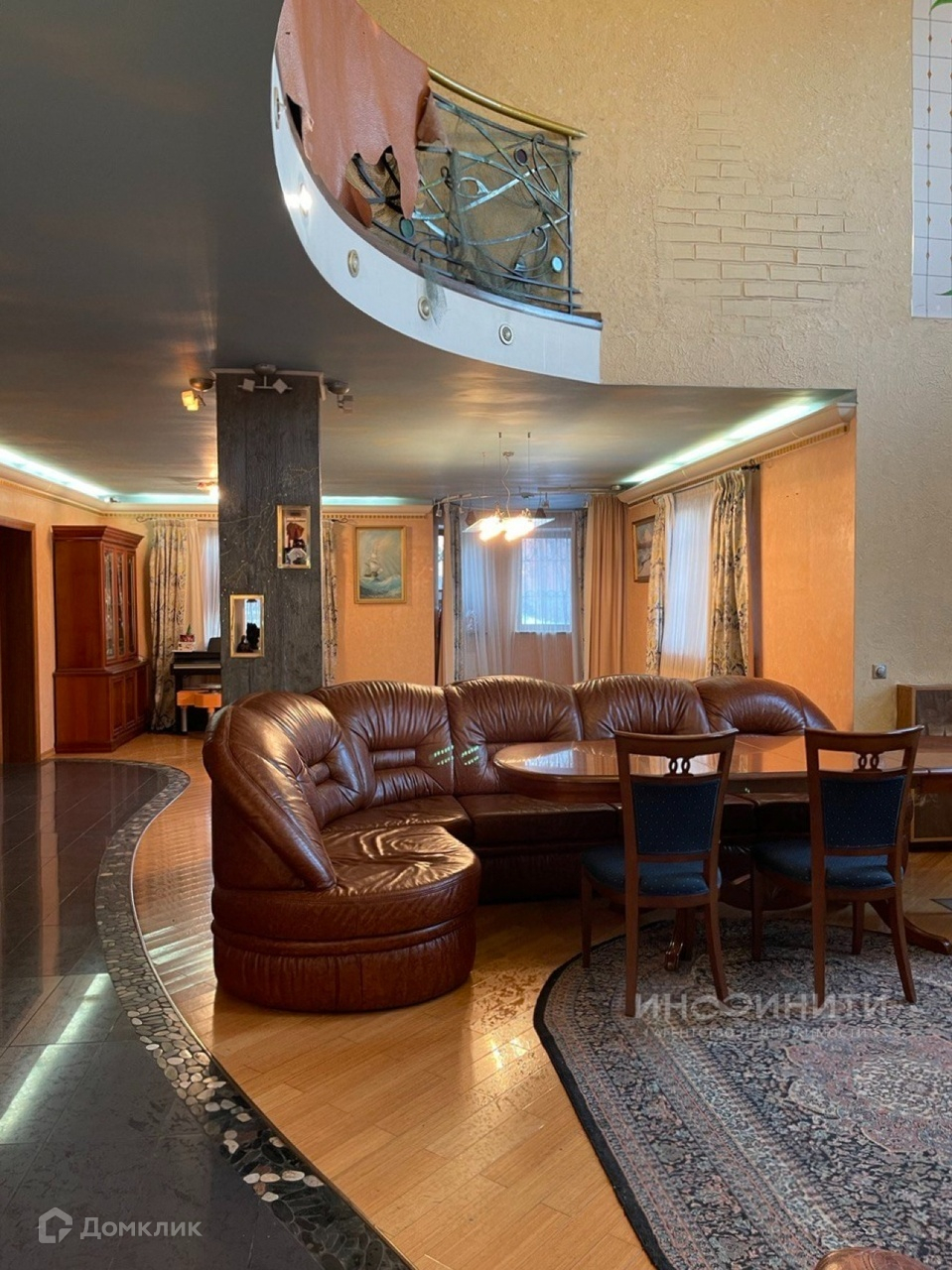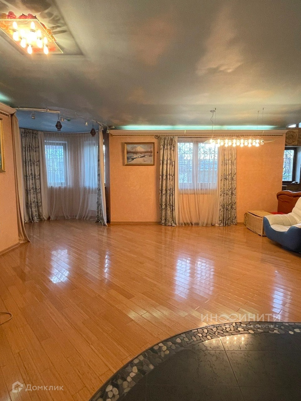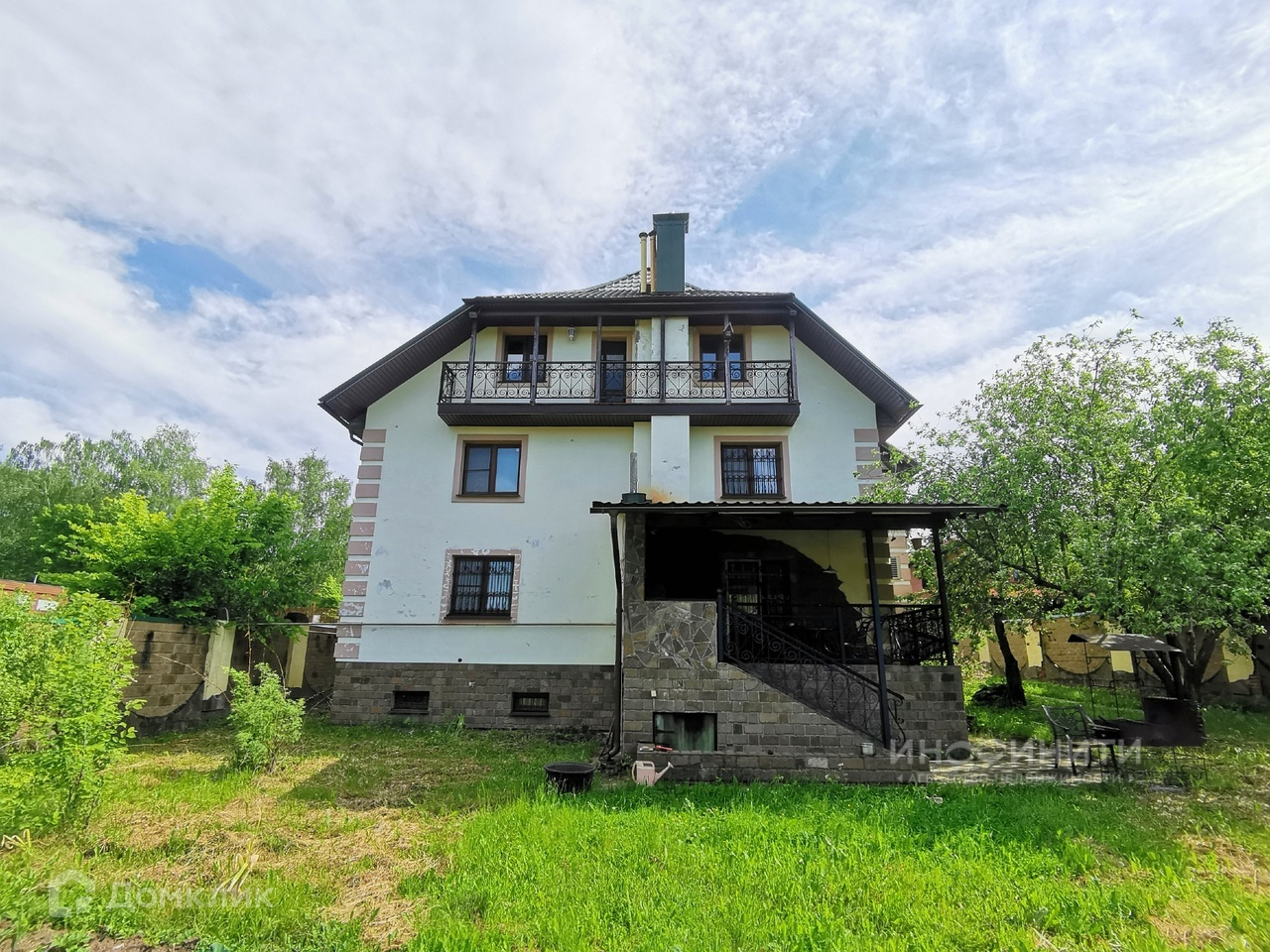 На участке удачно расположены несколько строений: жилой дом площадью 539,6 квадратных метров, двухэтажная баня площадью 200 квадратных метров, с бассейном и большим и сухим подвалом, гараж на два авто, дровник. Дом имеет два этажа, большой подвал-цокольный этаж и обустроенную мансарду. В доме 6 спален, каминный зал 73,4 кв.м., гостиная 35,1 кв.м., игровая комната 28,1 кв.м., спортзал 68,3 кв.м. В доме два санузла, масса полезных подсобных помещений, котельная.