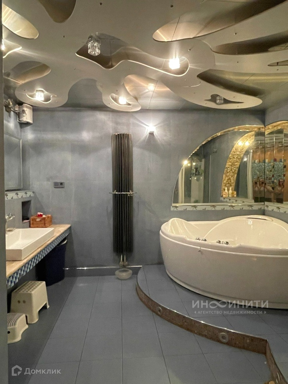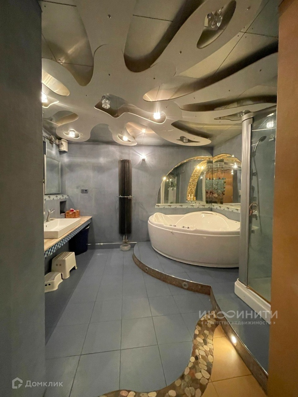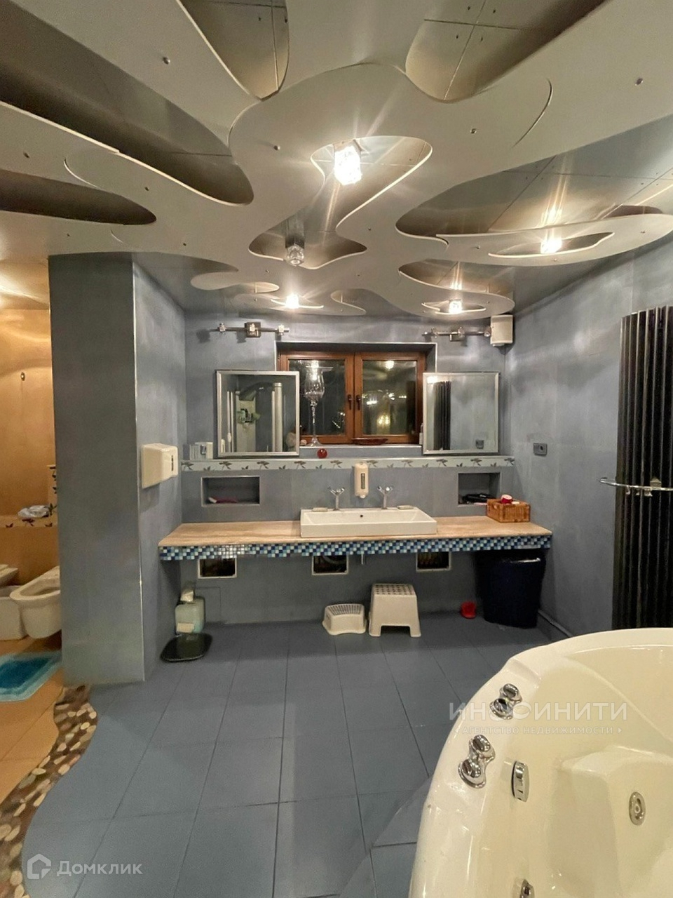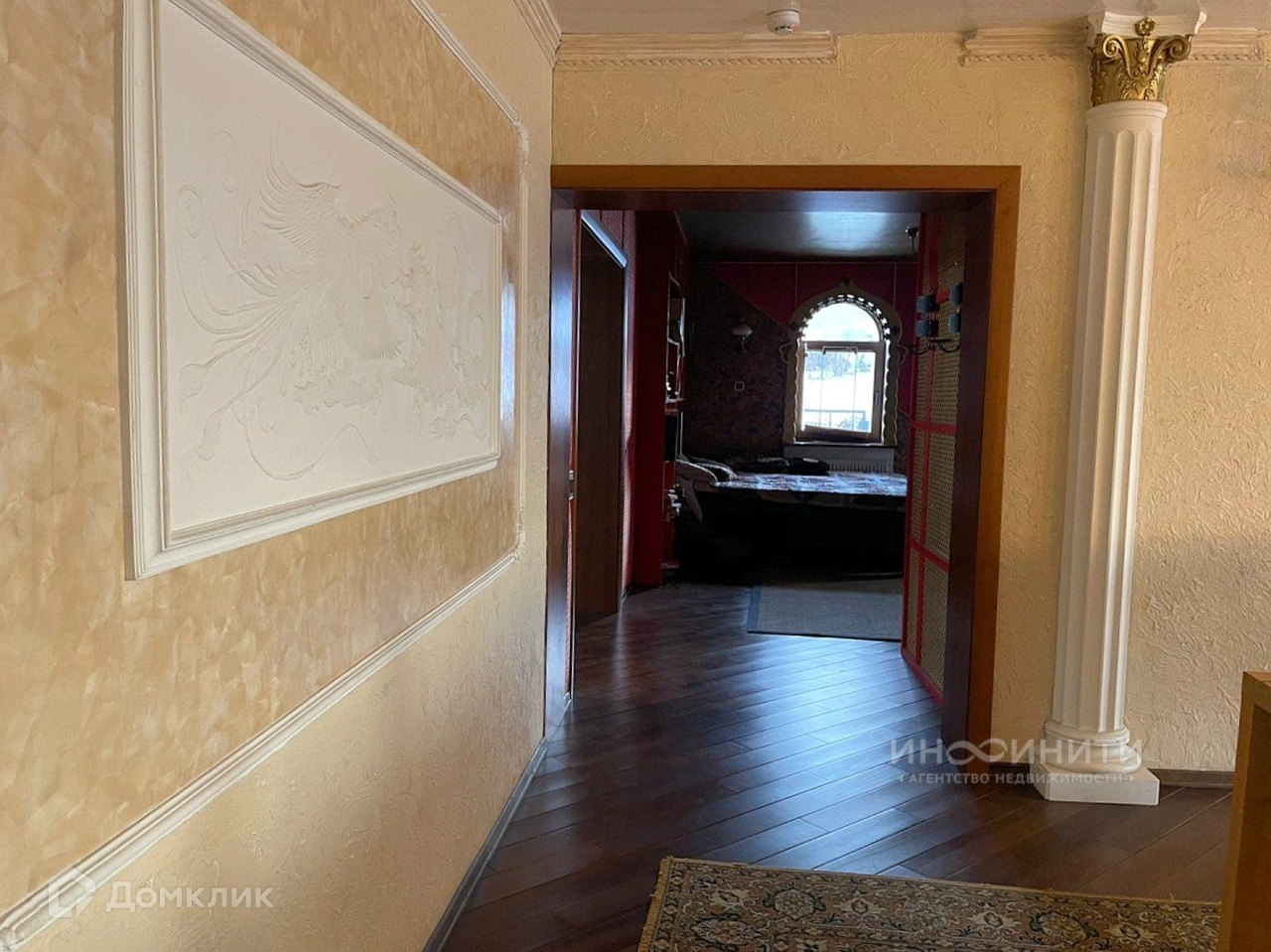 На участке удачно расположены несколько строений: жилой дом площадью 539,6 квадратных метров, двухэтажная баня площадью 200 квадратных метров, с бассейном и большим и сухим подвалом, гараж на два авто, дровник. Дом имеет два этажа, большой подвал-цокольный этаж и обустроенную мансарду. В доме 6 спален, каминный зал 73,4 кв.м., гостиная 35,1 кв.м., игровая комната 28,1 кв.м., спортзал 68,3 кв.м. В доме два санузла, масса полезных подсобных помещений, котельная.