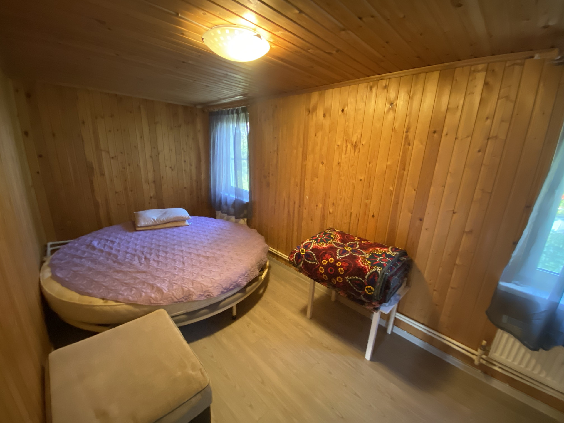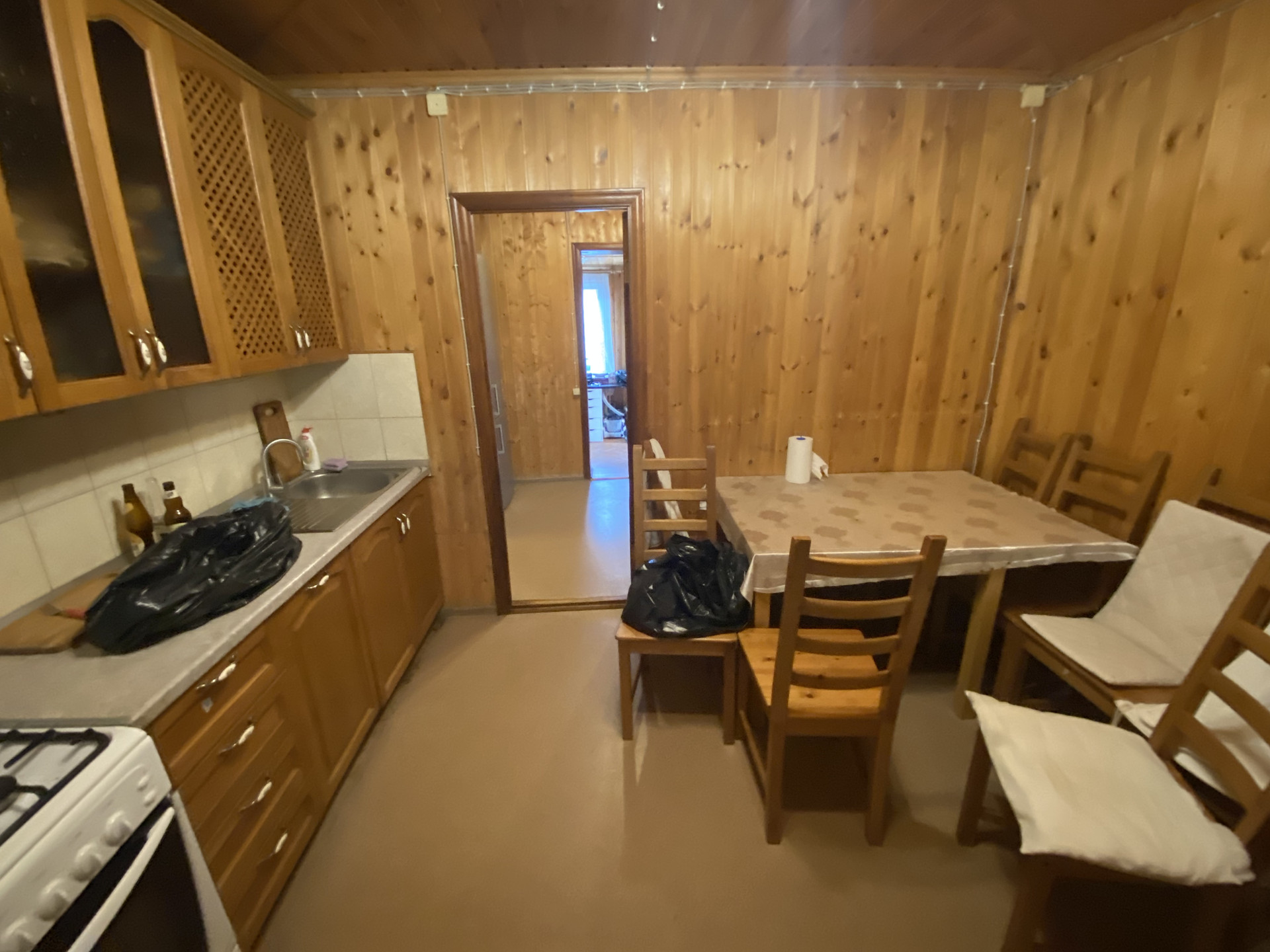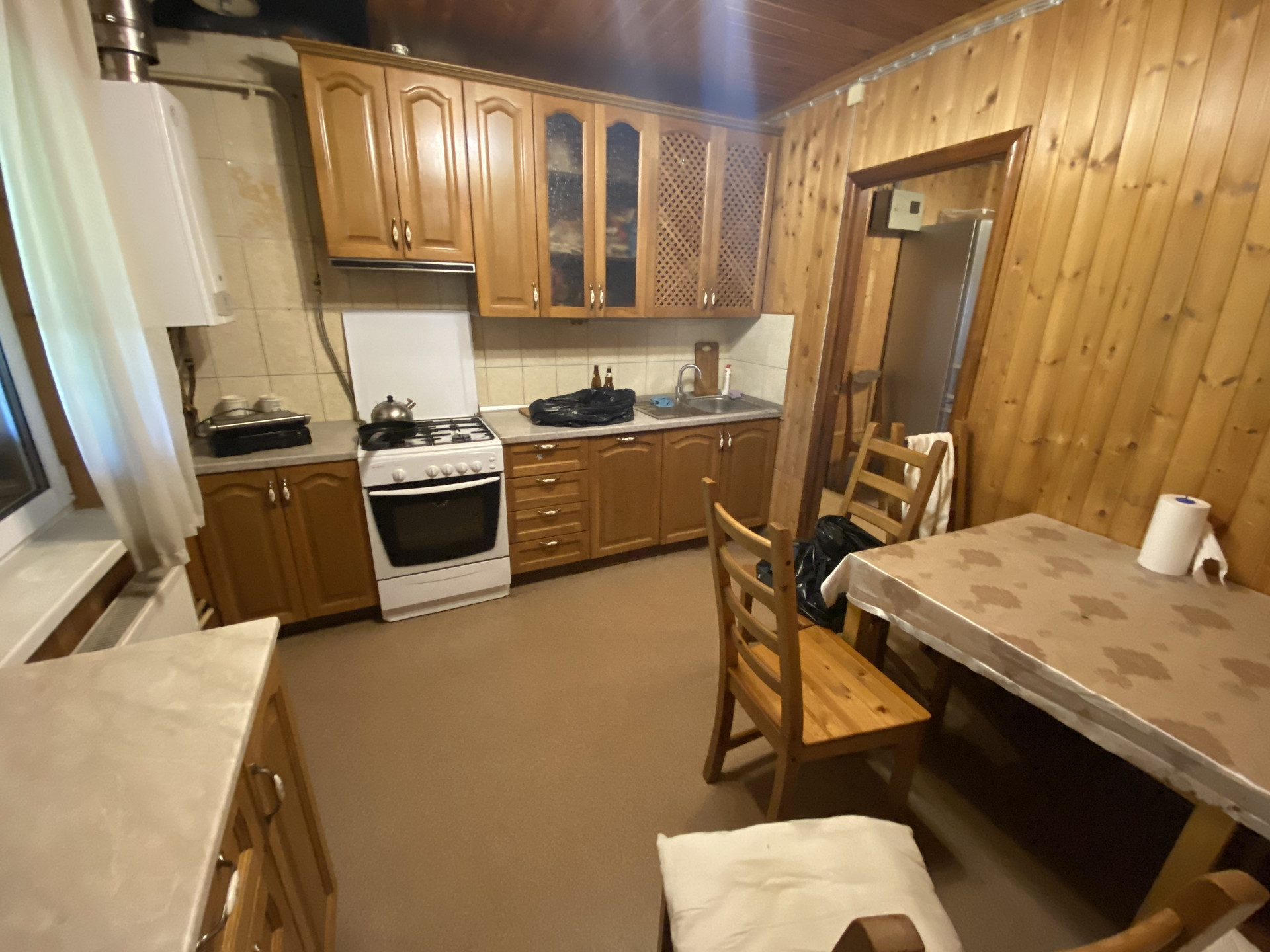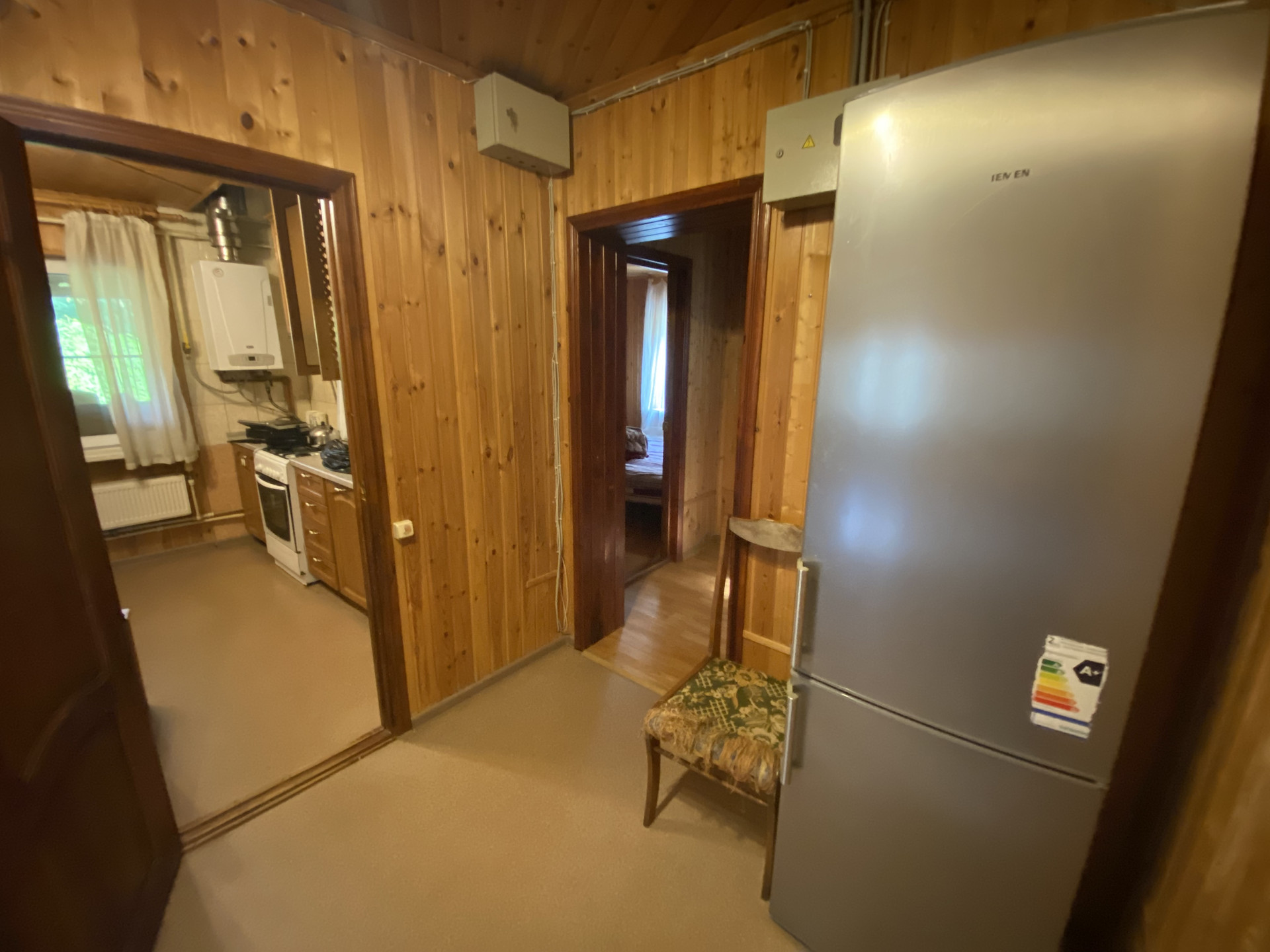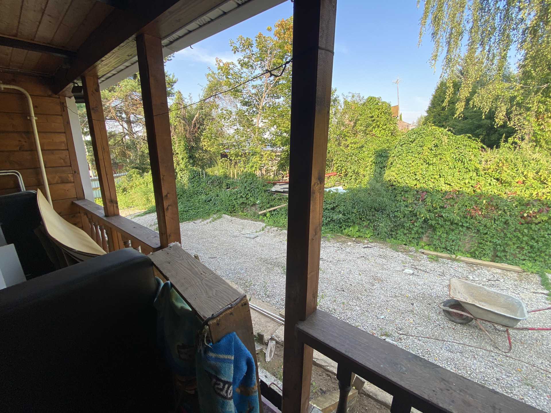 Деревянный дом 109,1м для круглогодичного проживания. Газ, вода колодец, канализация септик. 3 спальни, гостиная, кухня, совмещенный санузел, веранда на задний двор. Гостевой домик: спальня, кухня и санузел.
