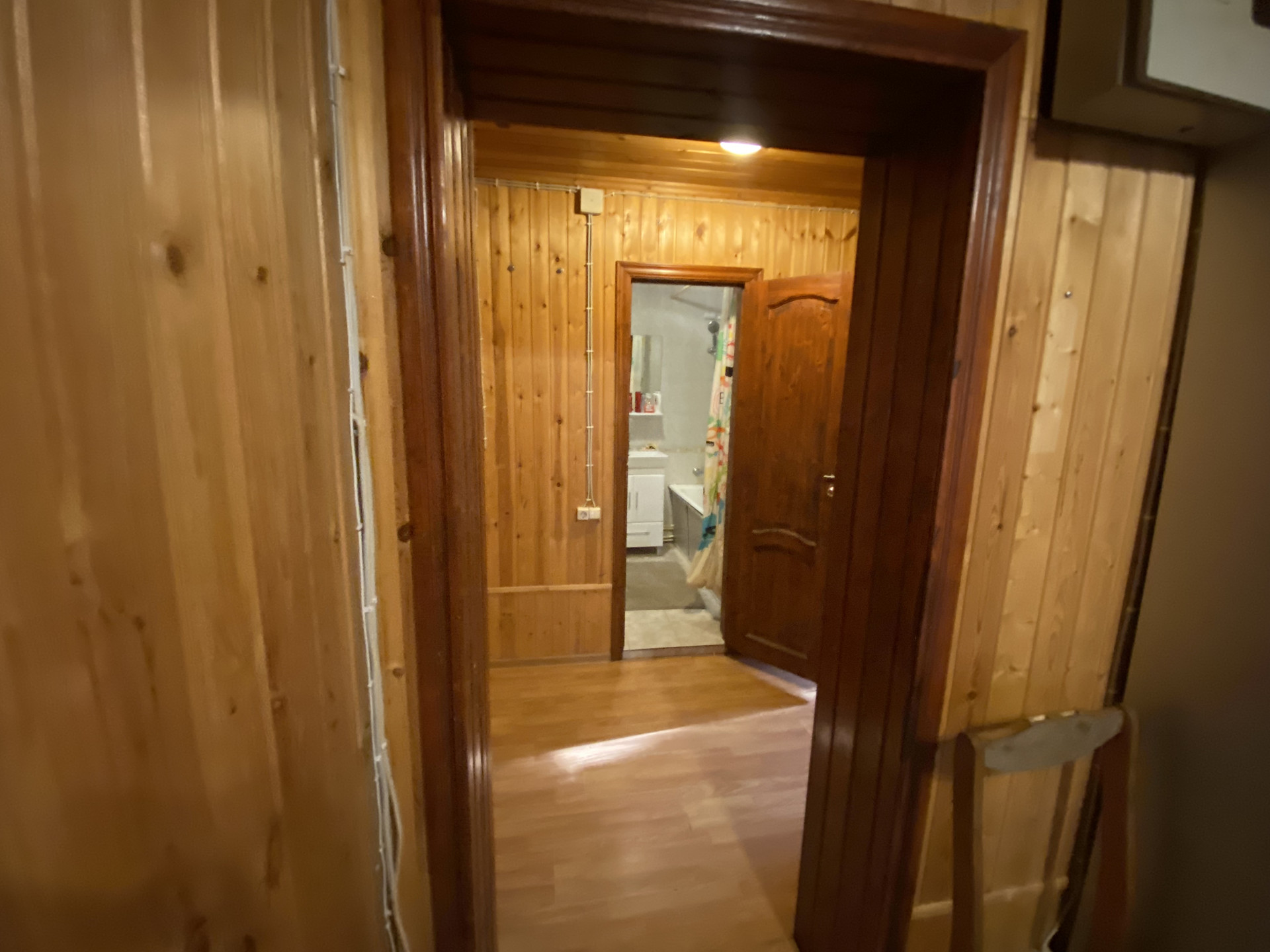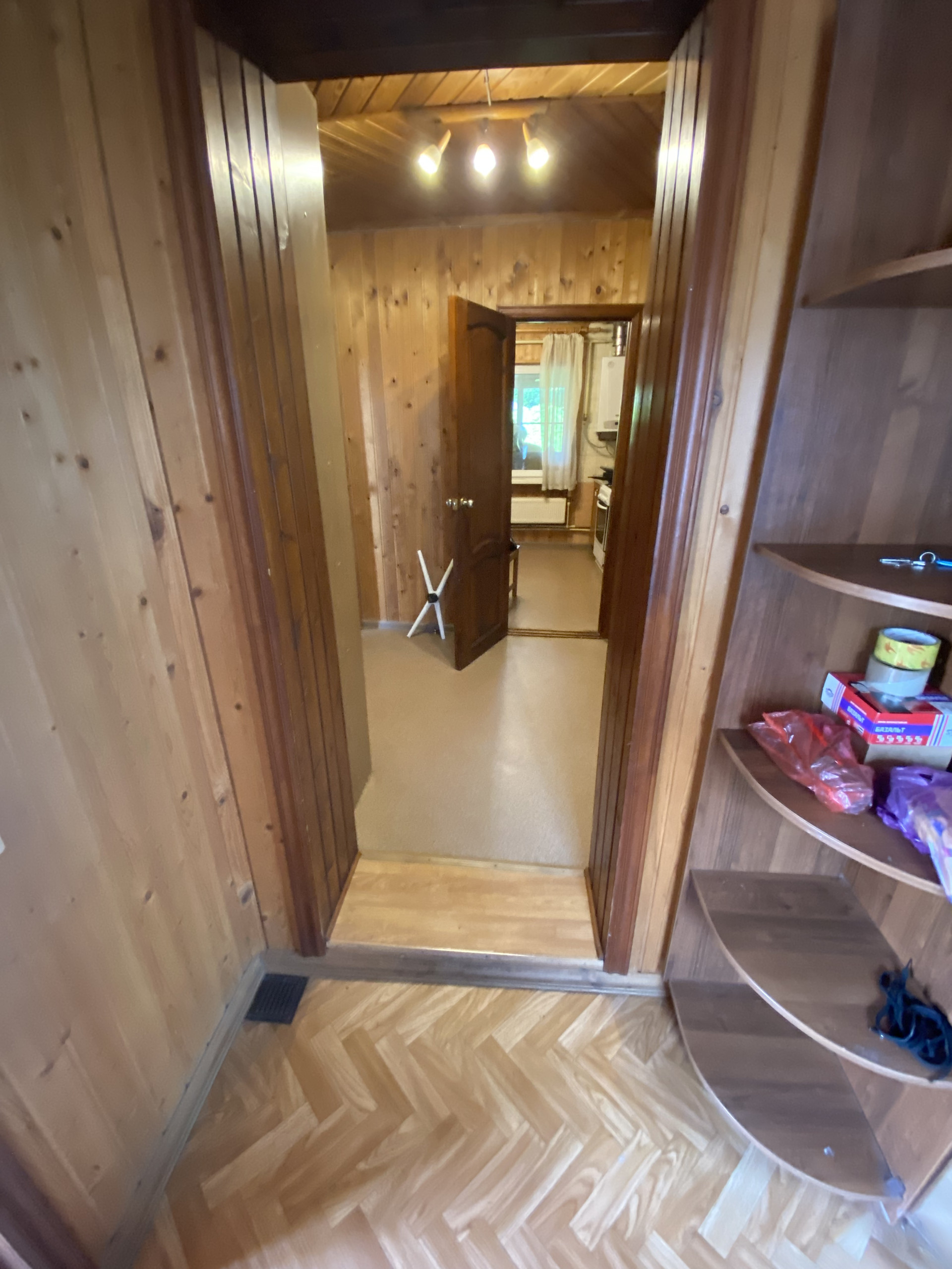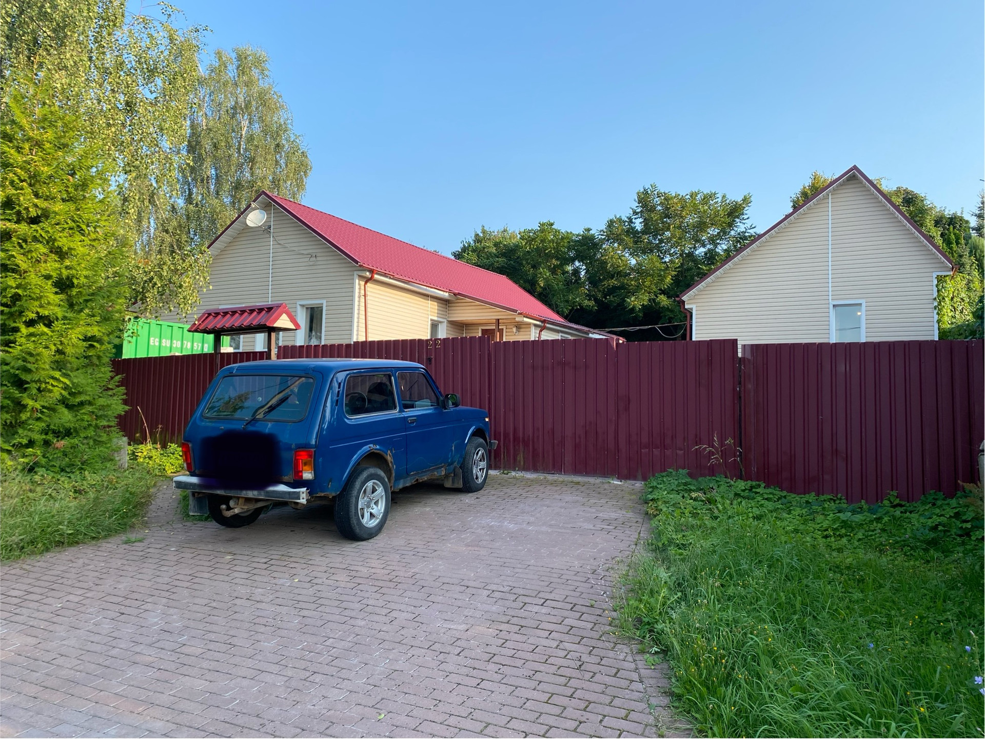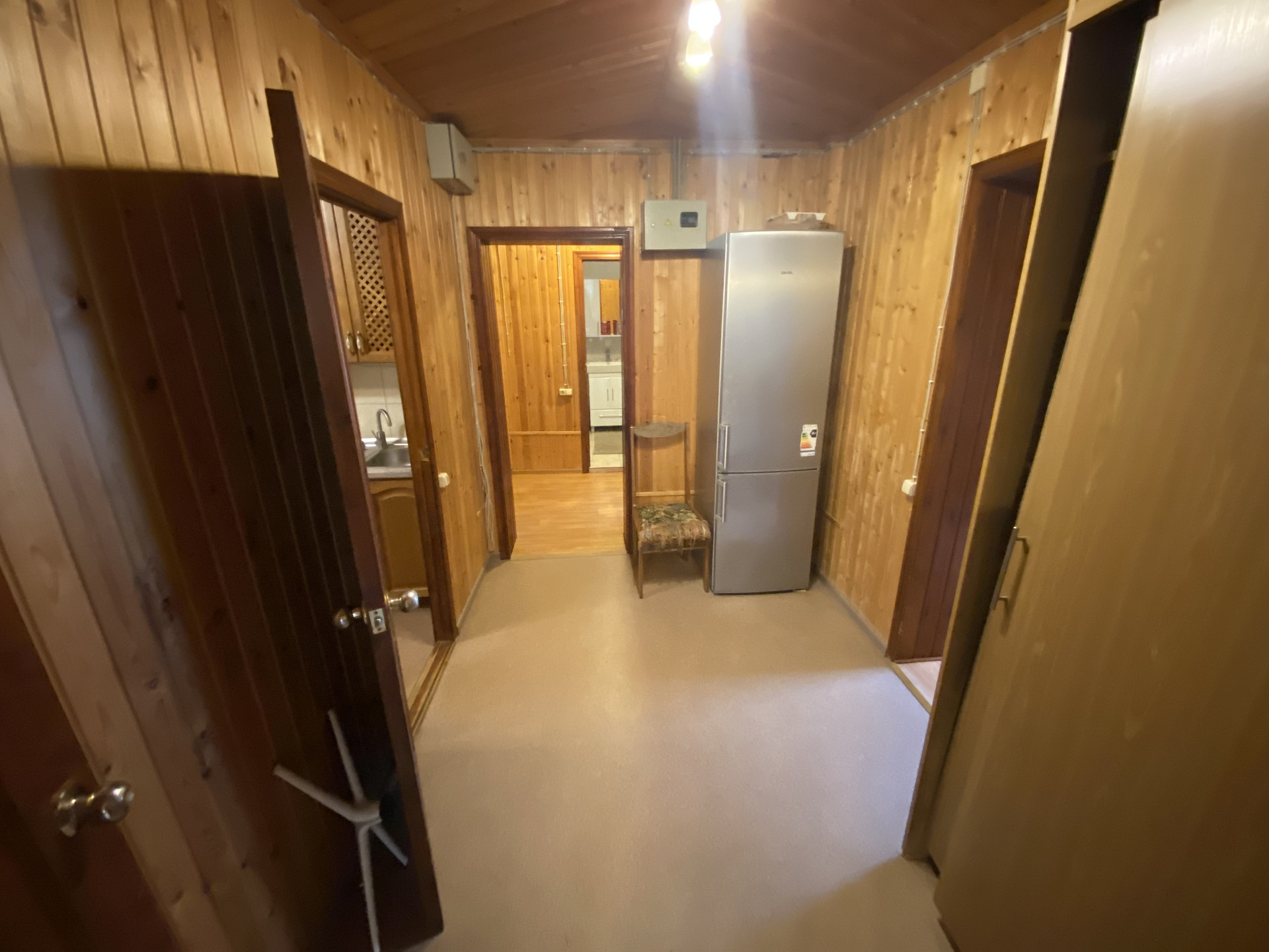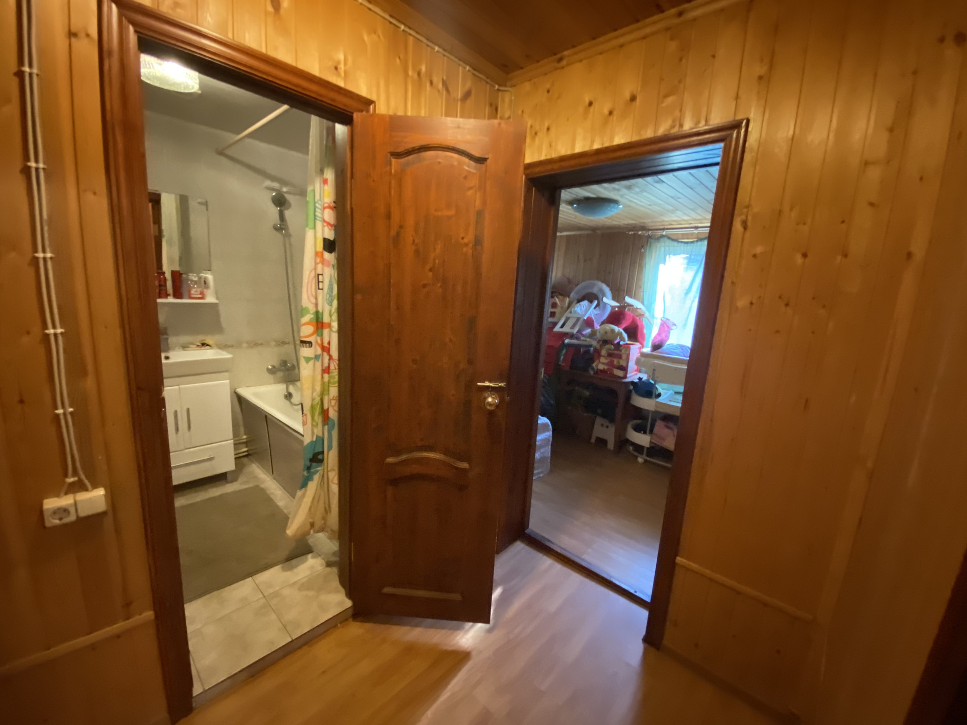 Деревянный дом 109,1м для круглогодичного проживания. Газ, вода колодец, канализация септик. 3 спальни, гостиная, кухня, совмещенный санузел, веранда на задний двор. Гостевой домик: спальня, кухня и санузел.