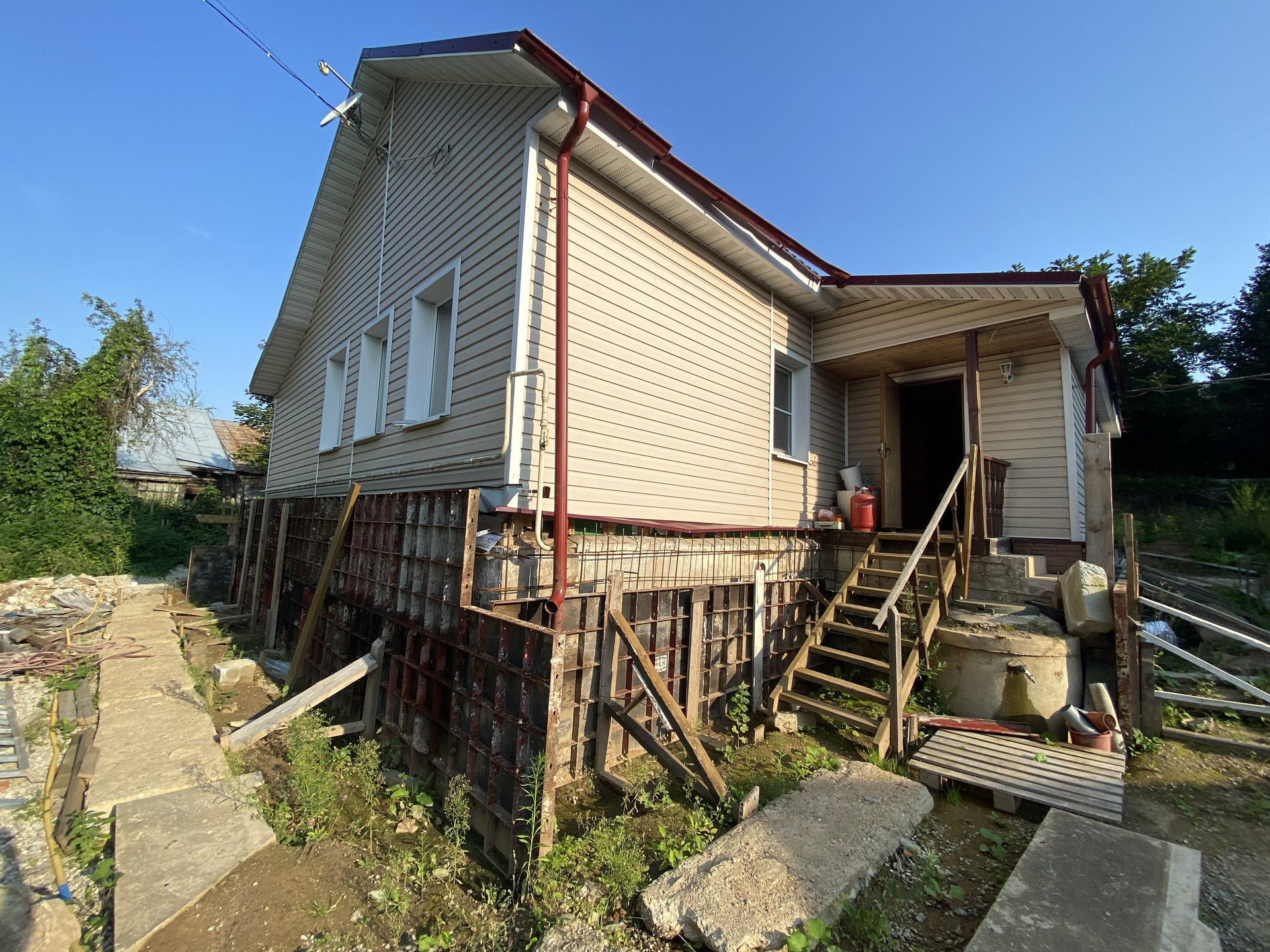 Дом с участком приобретен в прошлом году в ипотеку Сбер под 11,6% с ежемесячным платежом 128 000р. Были начаты работы по выравниванию участка и усилению фундамента старый строений, а также фундамента боковых ограждений участка и цельной плиты фундамента для нового строения в глубине участка. Частично эти работы были выполнены и затем были приостановлены. Все подробности по телефону и во время посещения объекта.