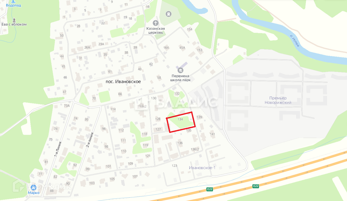 "Ивановское", Павлово-слободинский район, всего в 19 км от МКАД по Новорижскому шоссе, расположено в лесной зоне, с удобным съездом и выездом на шоссе.