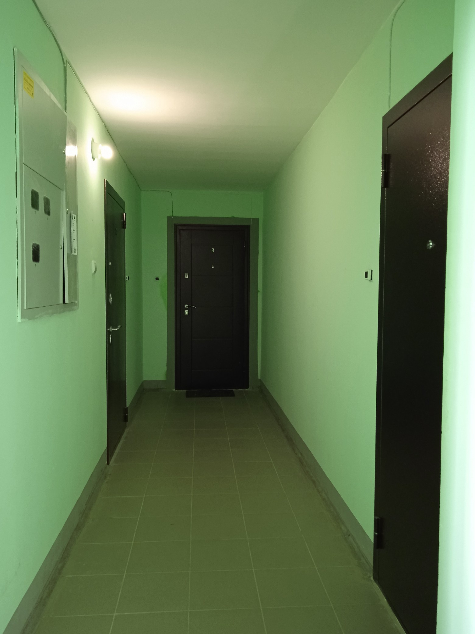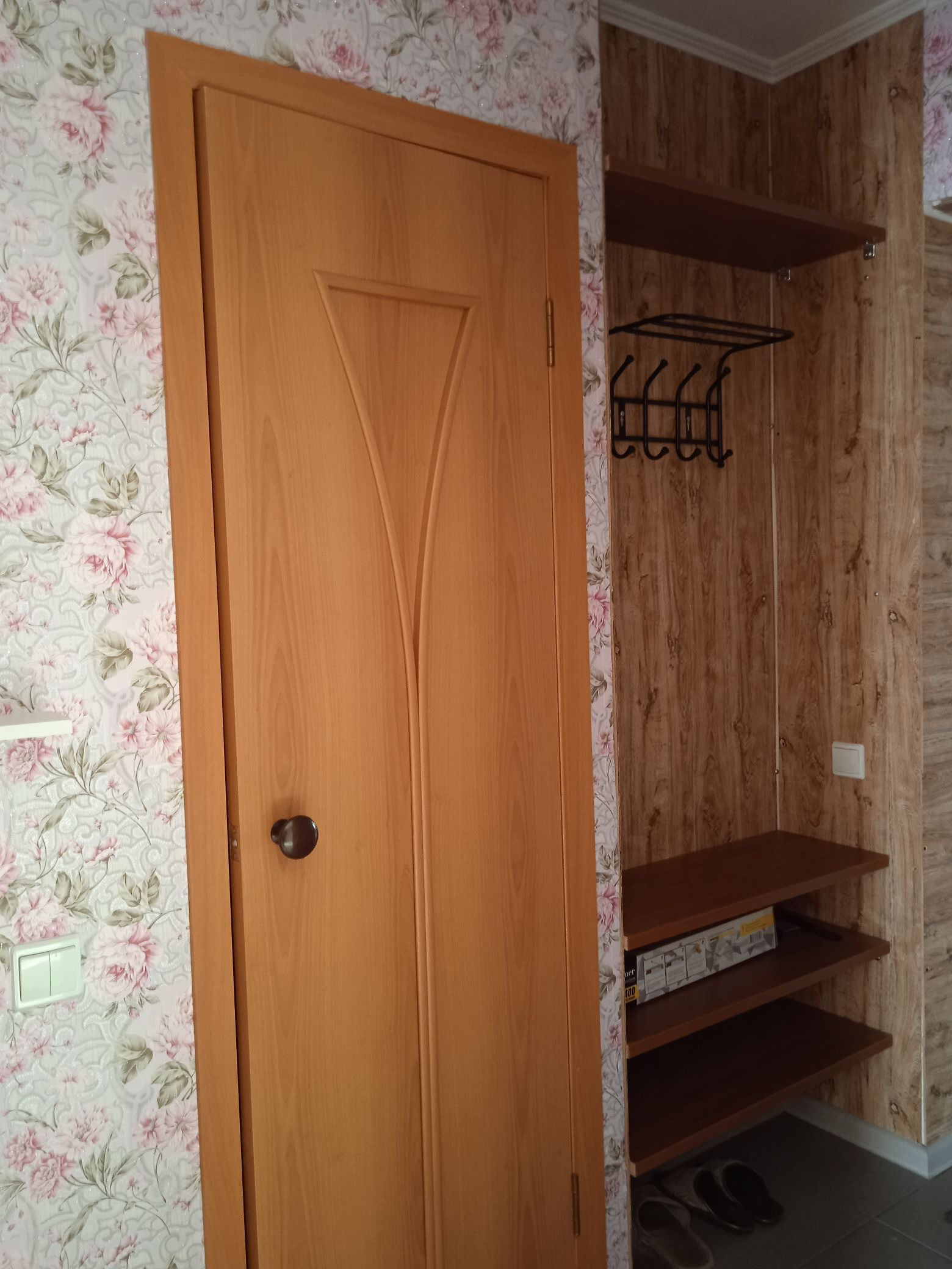 Прихожая. Новая входная, металлическая дверь.