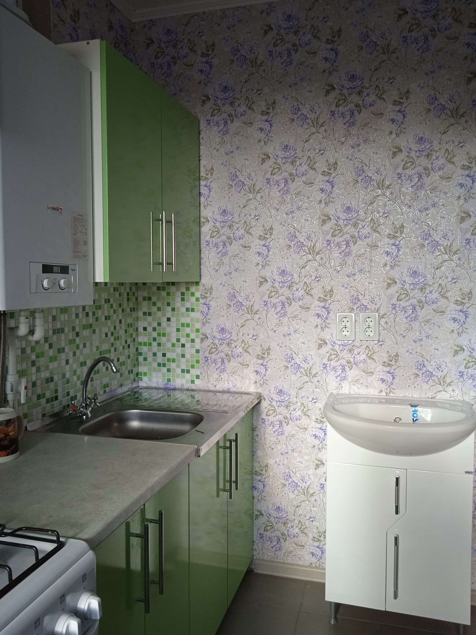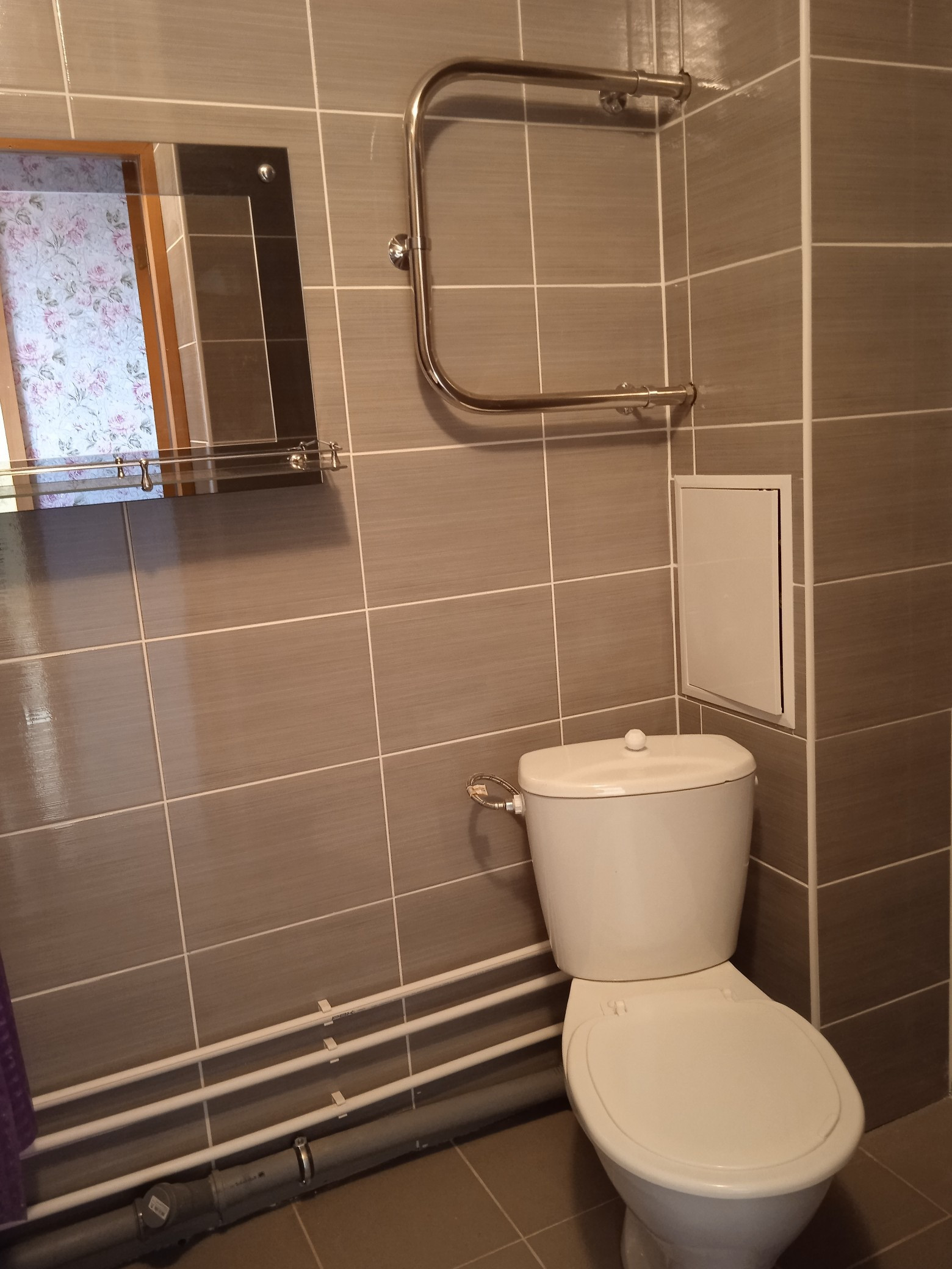 Сан. узел совмещён, в кафеле.Новая сантехника, установлены счётчики на воду.