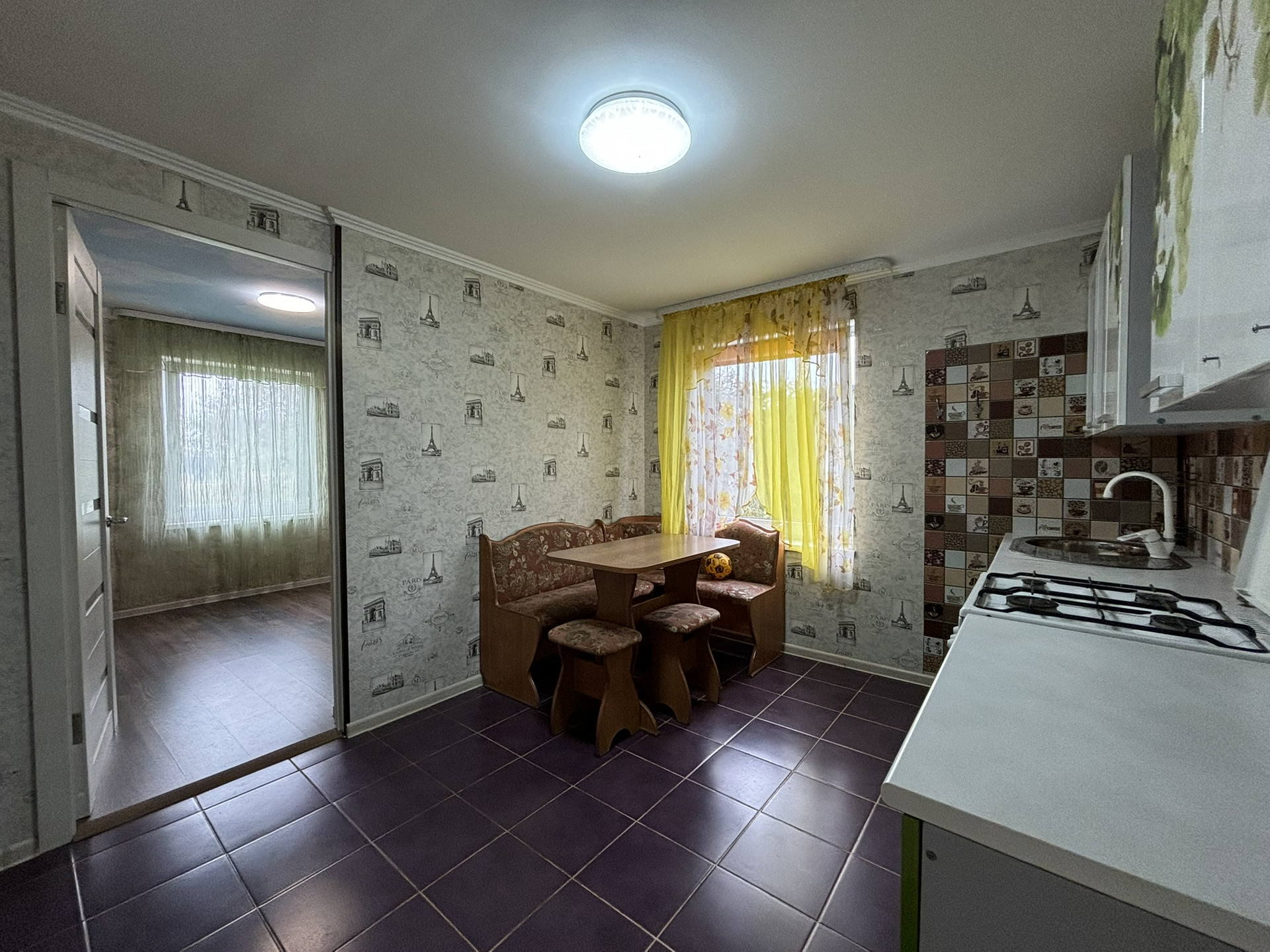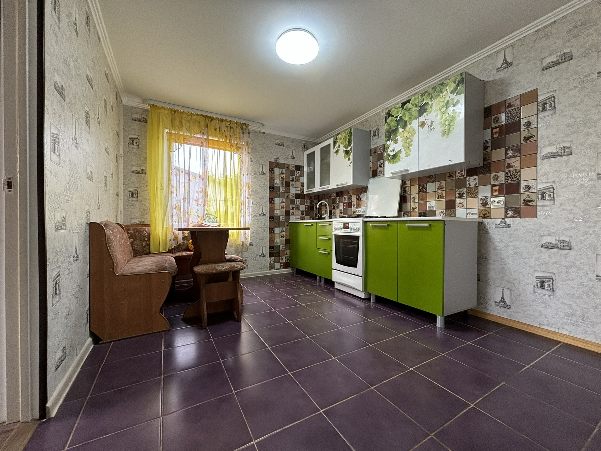 На кухне установлен электрический теплый пол — это отличный выбор, так как он создает комфортные условия, особенно в холодные месяцы. Такие системы быстро нагреваются и обеспечивают равномерное распределение тепла.