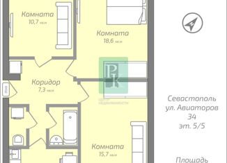 Продажа 3-ком. квартиры, 61.5 м2, улица Авиаторов, 10