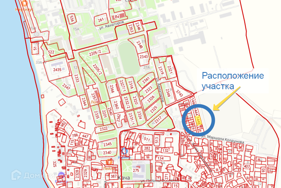 До автостанции в центре Качи пешком 5 минут. До центра Севастополя 40 минут на автомобиле. В пос. Кача имеется вся инфраструктура, рядом с участком: школа, садик, магазины, рынок, МФЦ и многое другое.