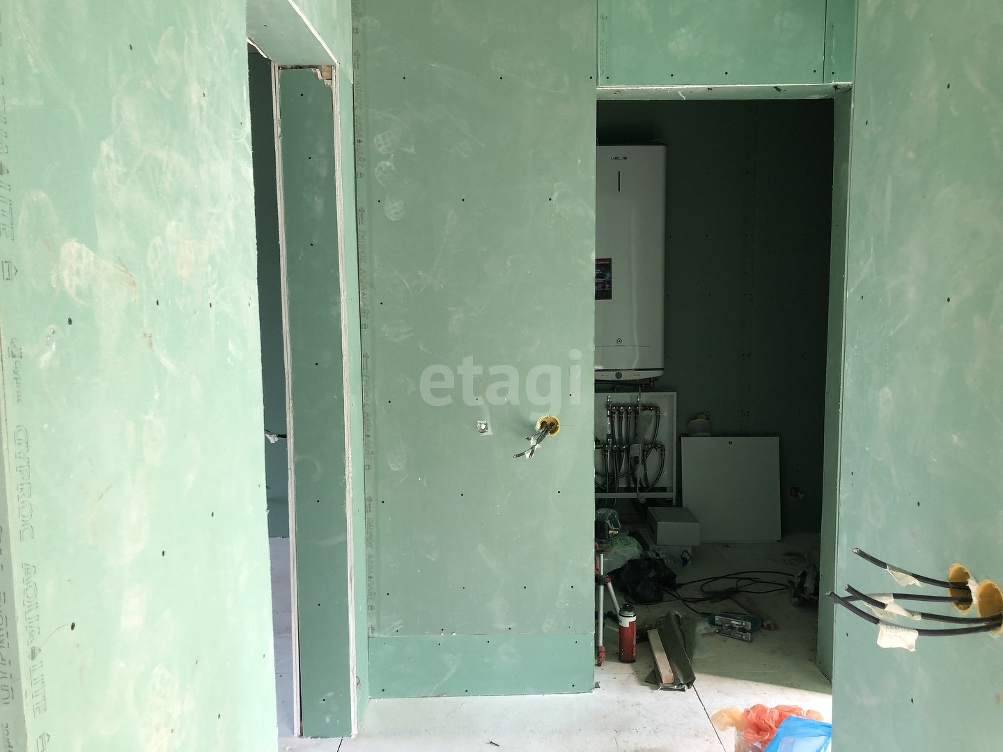 - Отопление водяное: монтаж радиаторов алюминиевых, электрокотёл 6-9 кВт, труба ПТЭ-32. Возможно устройство теплого пола.