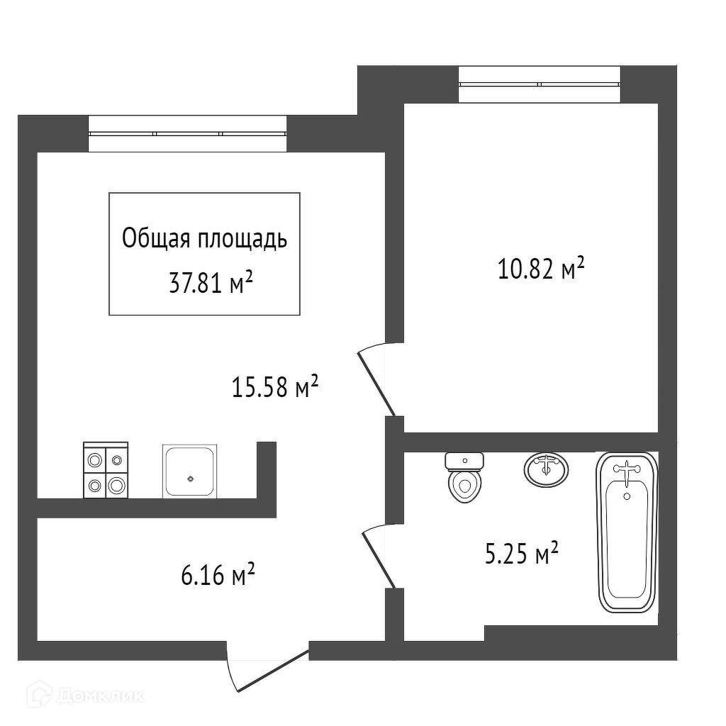 Общая площадь 37.81 м2