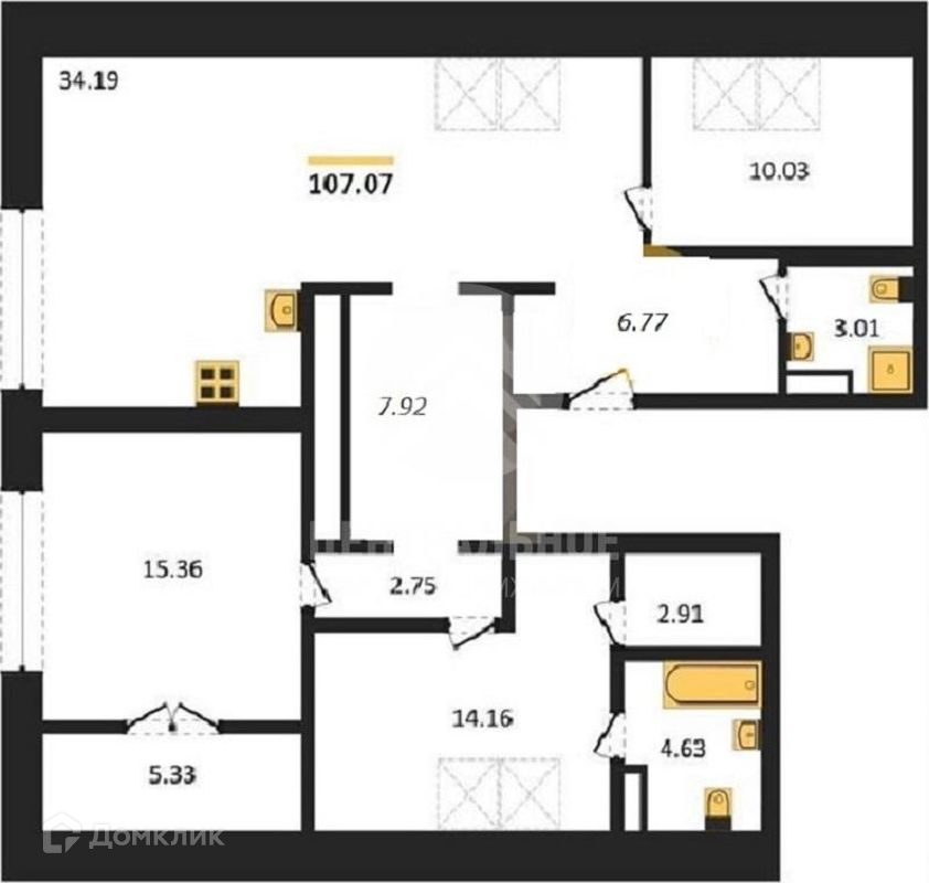 Общая площадь 107.1 м2