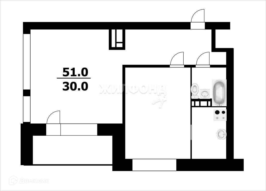 Общая площадь 51 м2
