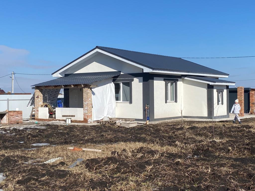 Представляю Вашему вниманию загородный дом жилой площадью 70кв. м+беседка+утеплённая прихожая! Удобная планировка для небольшой дружной семьи,где 2 спальни,1 кухня-гостиная, котельная,сан узел и душевая.Дом находится в прекрасном живописном месте, вдали от города,заводов и шумных дорог. Посёлок Калинка не проездной. Расположенный рядом с лесами и озёрами, вокруг посёлка 3 озера, на одном из них имеется пляж для купания! Рядом сосновый лес! В посёлке есть дет.садик, начальная школа,2 магазина,мёд.пункт и пункт полиции.Сам участок является крайним в посёлке и граничит с садом.(яблоки,груши,вишня) грибы в доступности 100м. Перед тем как построить дом очень долго выбирали участок чтобы максимально отдалиться от шума и суеты! Вокруг прекрасные доброжелательные соседи, которые тоже строят дома для ПМЖ, зимой дороги чистят до участка!                                           Теперь расскажем о доме:                                -для стен использовали газобетон фирма «Коттедж» толщина 30см;                                       -кровля: металлочерепица в красивом современном графитовом цвете;                                -окна фирмы «Veka»soft line 70 / мультифункциональные стеклопакеты                                                 -для утепления крыши использовали Эковату толщина 30см;                                                             -для отопления использовали систему тёплые полы, из сшитого полиэтилена «Valtec”;                  -электрокотел «Protherm”;                                         -вода из собственного колодца,12колец глубиной,вода очень вкусная и полезная без примесей;                                                                      -канализация, выгребная яма, 2 больших кольца закопаны на 3 метра в землю;                      -горячая вода-водонагреватель»Thermex»;              -по всему дому уложена плитка из керамогранита;                                                             -фасад сделан с утеплением!                                     -бетонная площадка под машину;                           Строили для себя, использовали только качественные материалы. Дом построен в 2022г.
