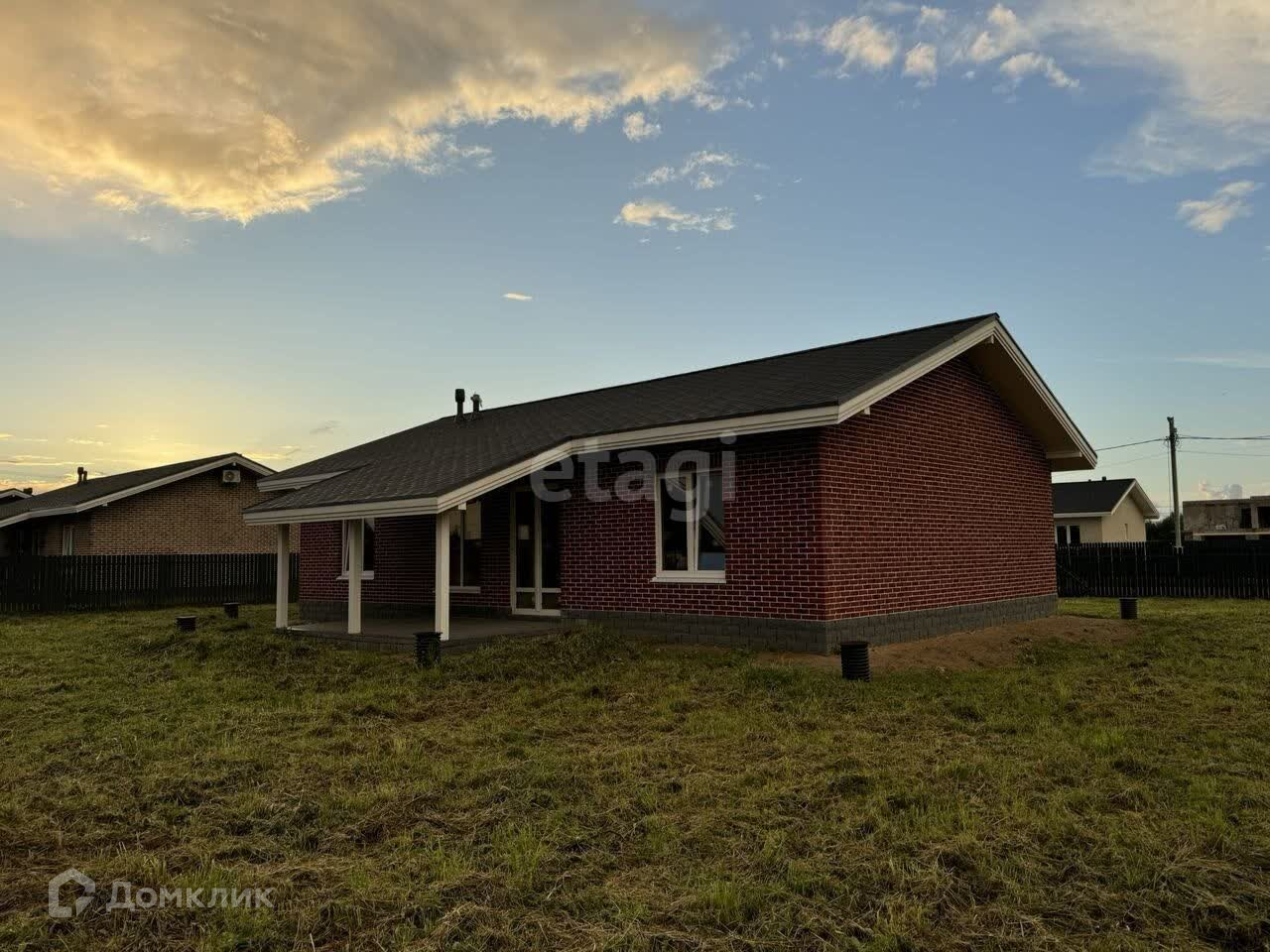 Дом построен из газосиликатного блока, кровля металлочерепица производства Grаndlinе, установлены пластиковые окна Rеhаu, установлено внешнее освещение дома. К дому уже подключены все коммуникации: электричество (15 кВт), магистральный газ, водопровод скважина, канализация септик. Участок огорожен забором из профлиста.