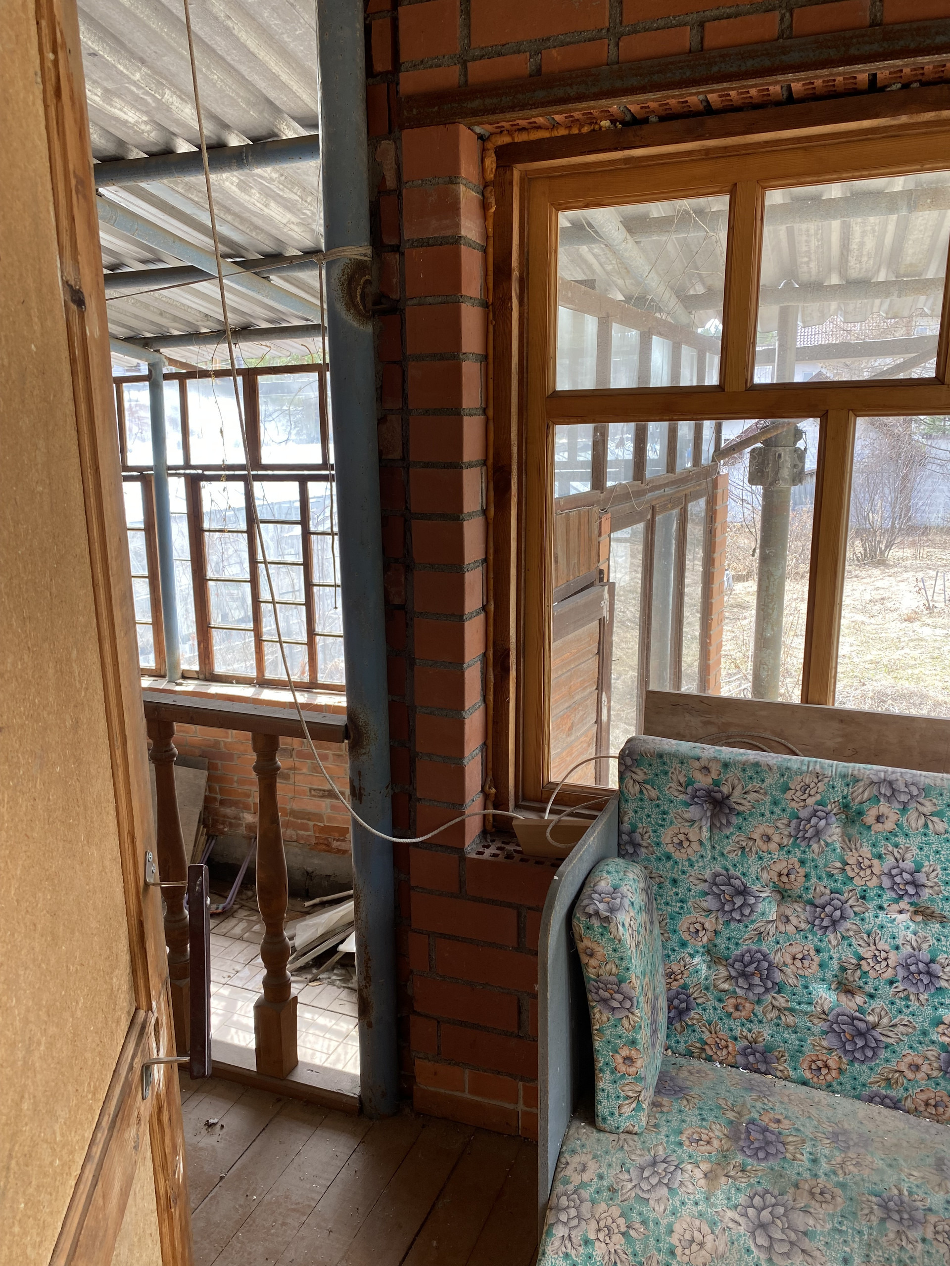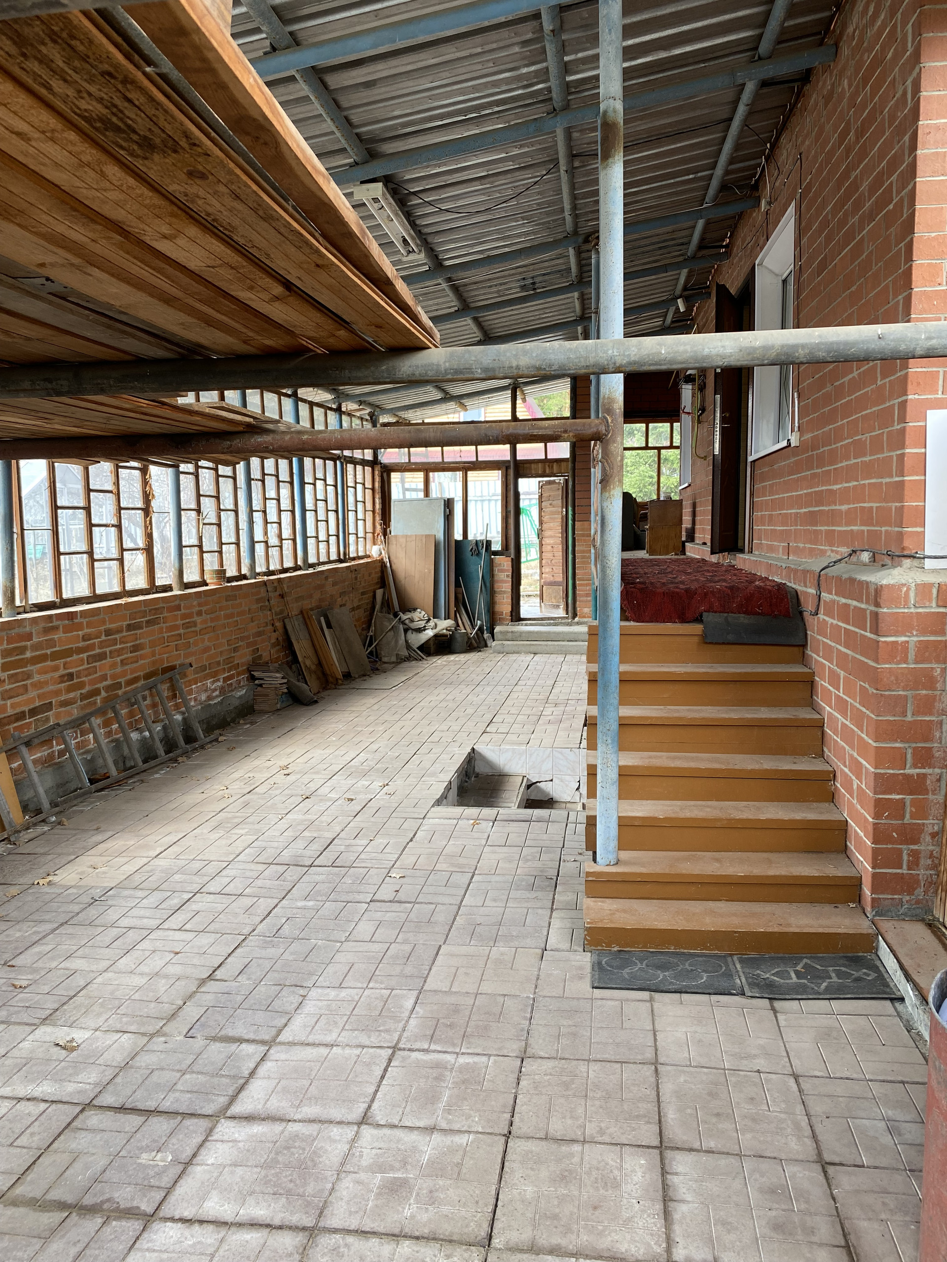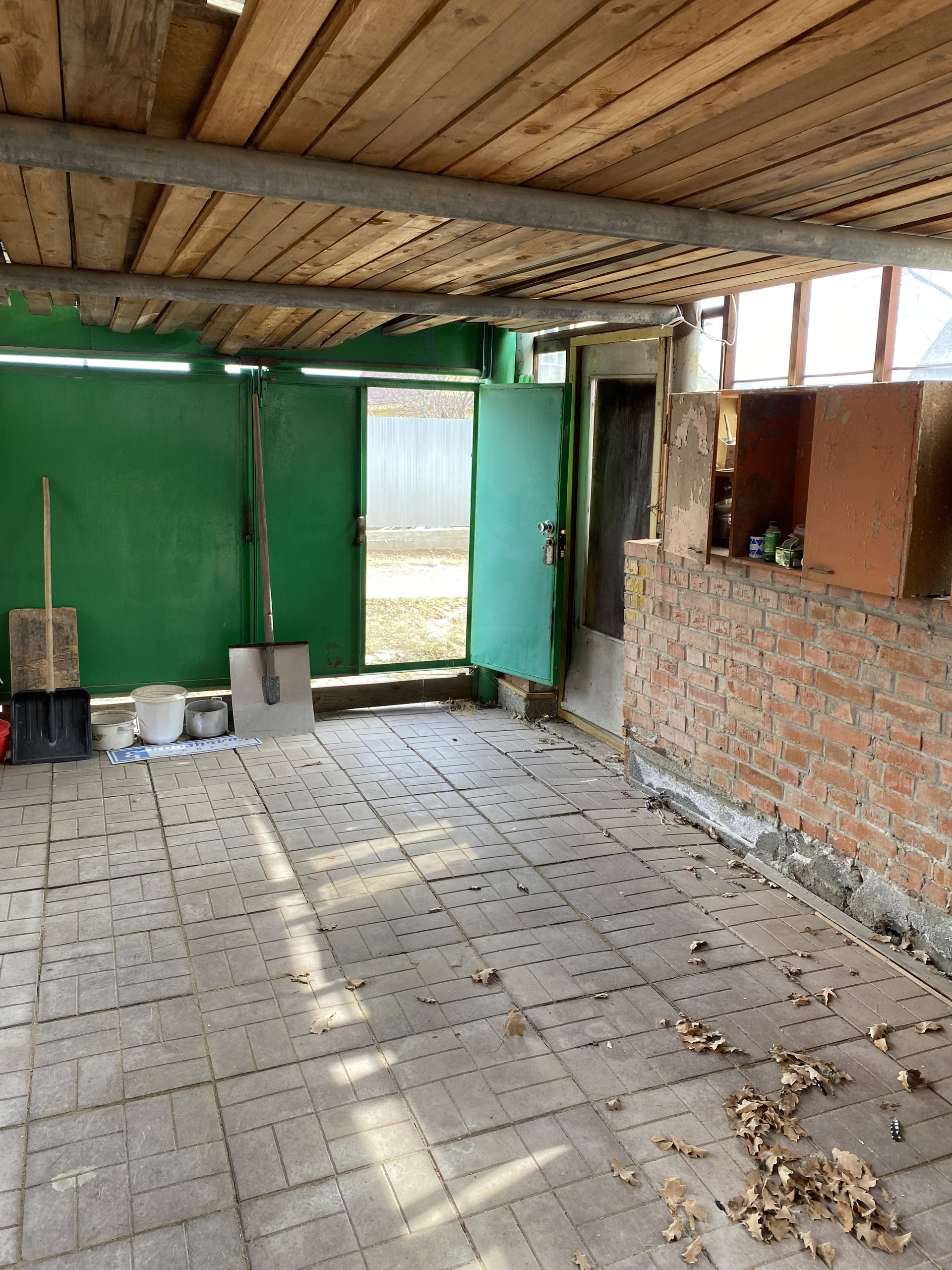 ДВОР: полностью застеклен и заведен под крышу. Есть возможность парковки автомобиля. Два металлических гаража.