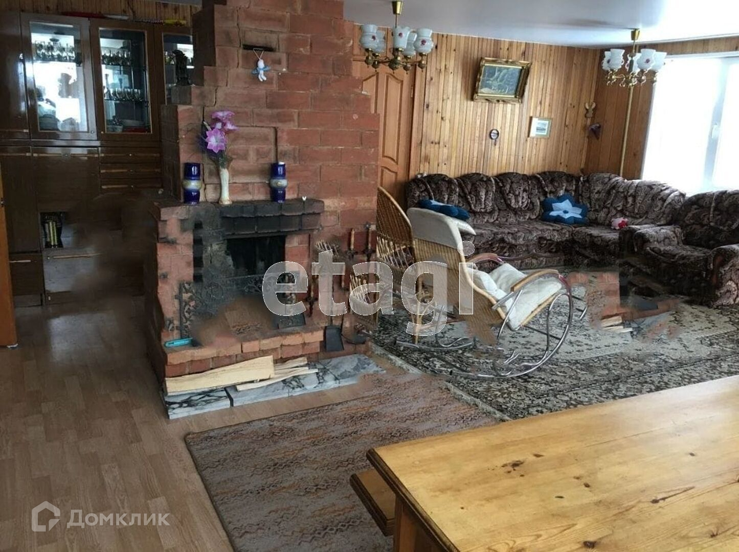 В доме два жилых этажа и подвал. 1этаж: кухня (газовая плита), столовая, спальня, гостиная с зоной отдыха и камином, ванная. 2 этаж: 4 спальни, гостиная.